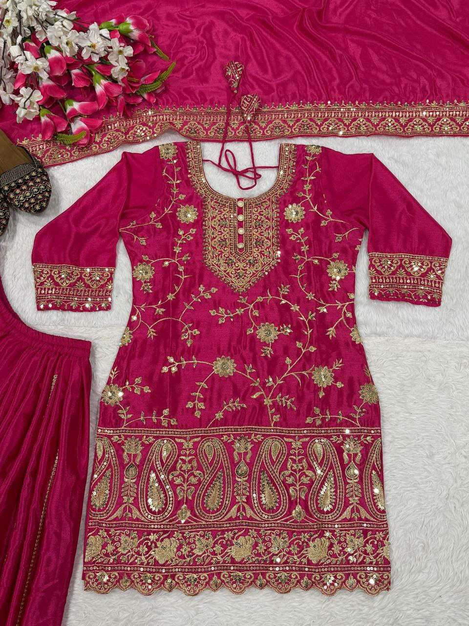 Dupatta Fabric :- Heavy Chinnon Silk Material With Embroidery Sequence Work...
