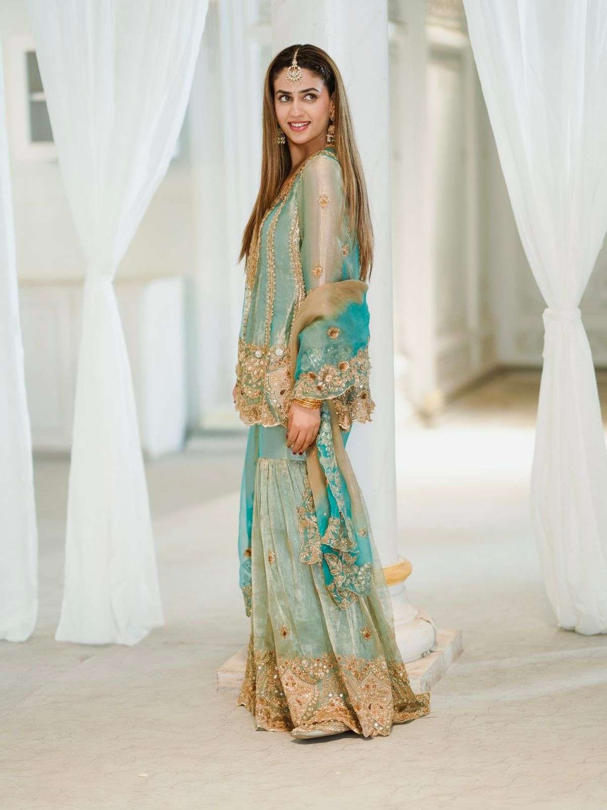 Size & Length: fully stitched to xxl size (free size) & length is 41 inches with 1.4 mtr flair in each leg of sharara