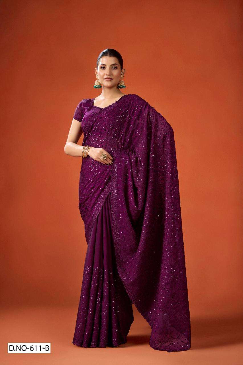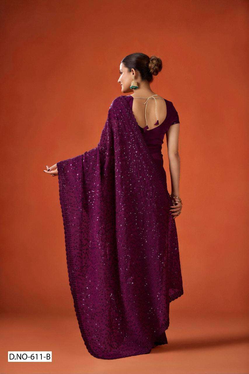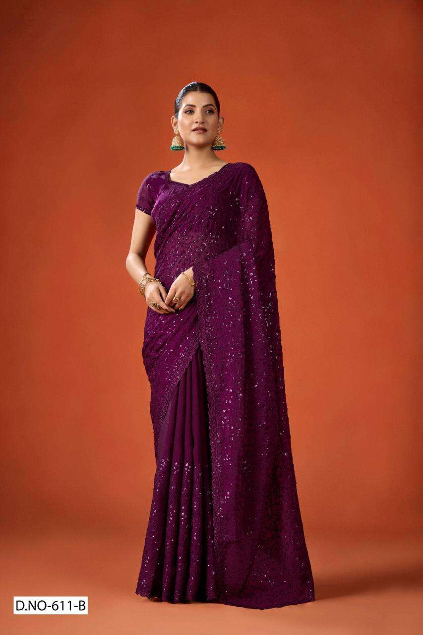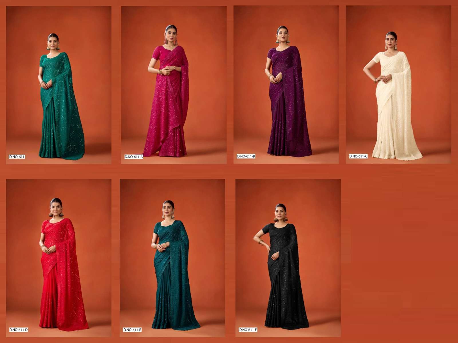 | Catalogue: | SHRI BALAJI PRESENTS 611 TO 611F SEQUENCE WORK PARTY WEAR SAREE COLLECTION |