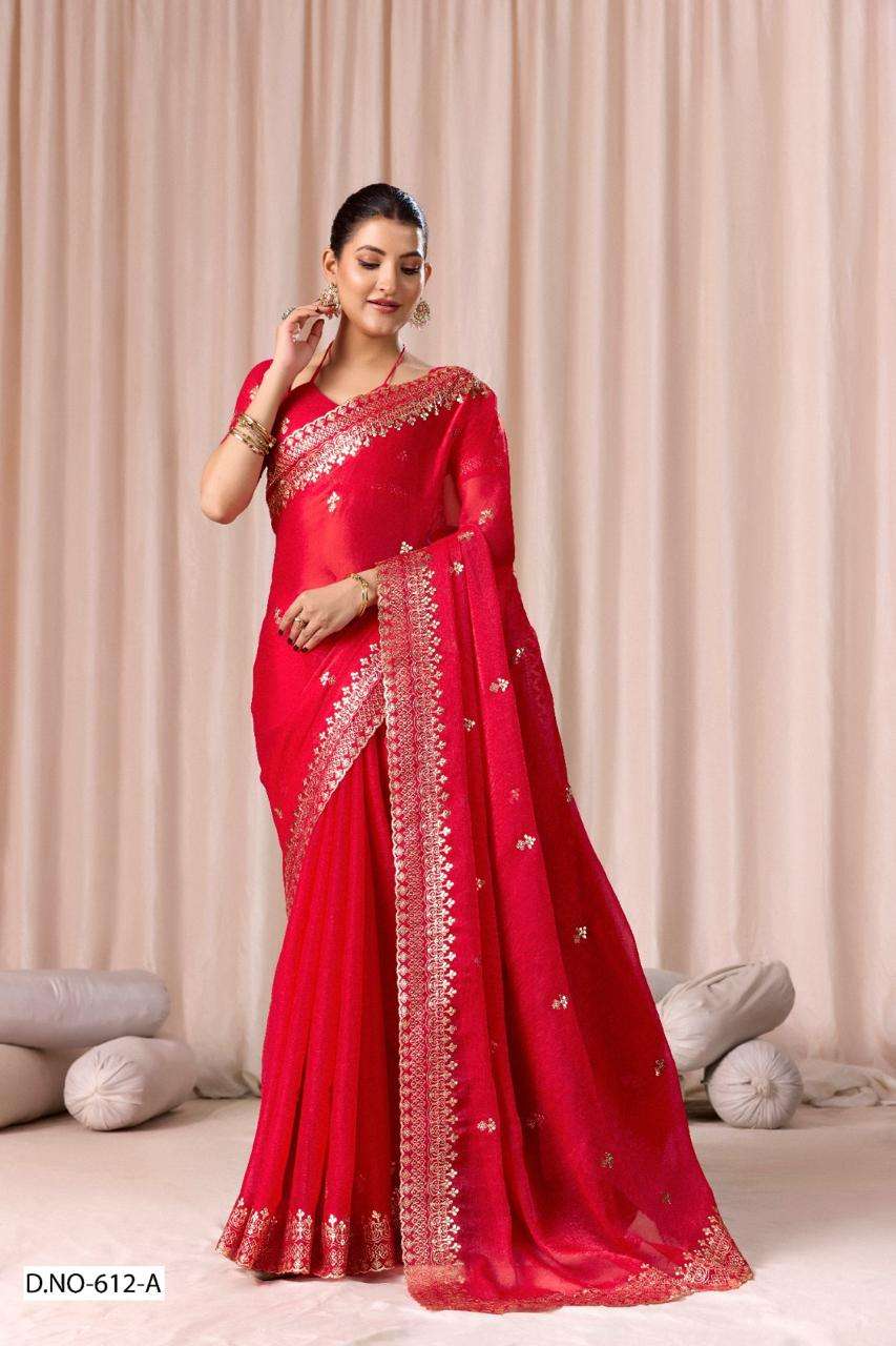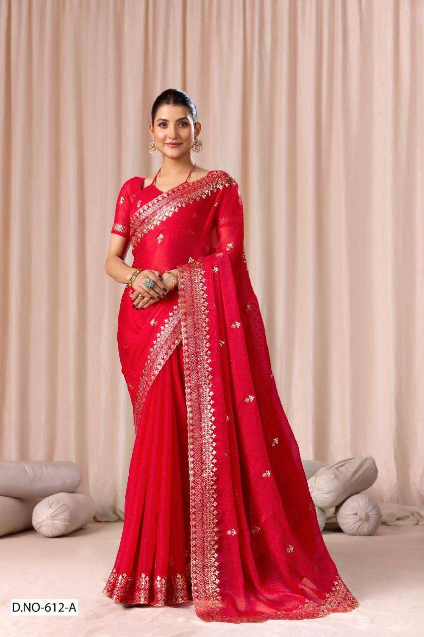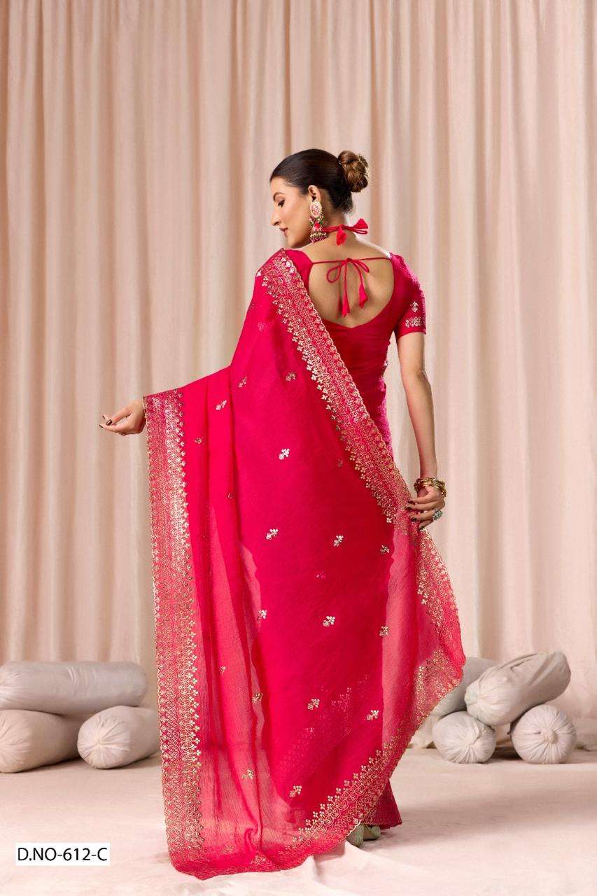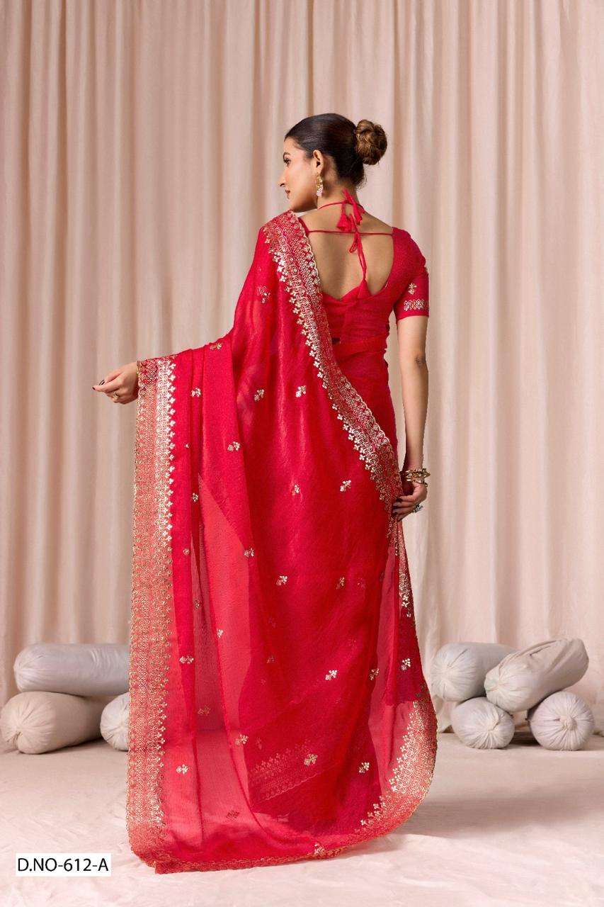 | Catalogue: | SHRI BALAJI PRESENTS 612 TO 612D FENDI CHIFFON PITHA WORK PARTY WEAR SAREE COLLECTION |