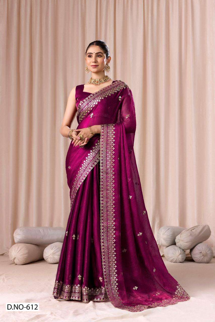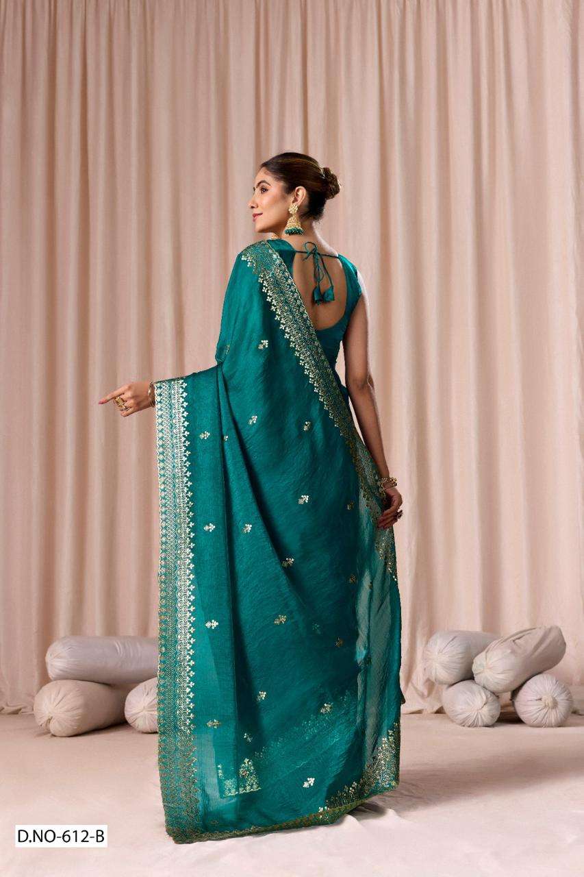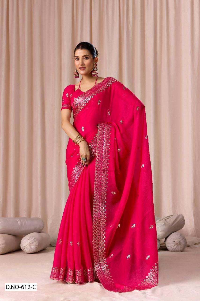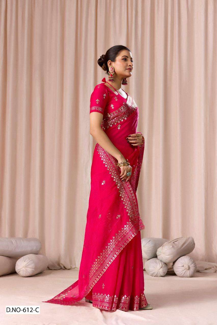 | Catalogue: | SHRI BALAJI PRESENTS 612 TO 612D FENDI CHIFFON PITHA WORK PARTY WEAR SAREE COLLECTION |