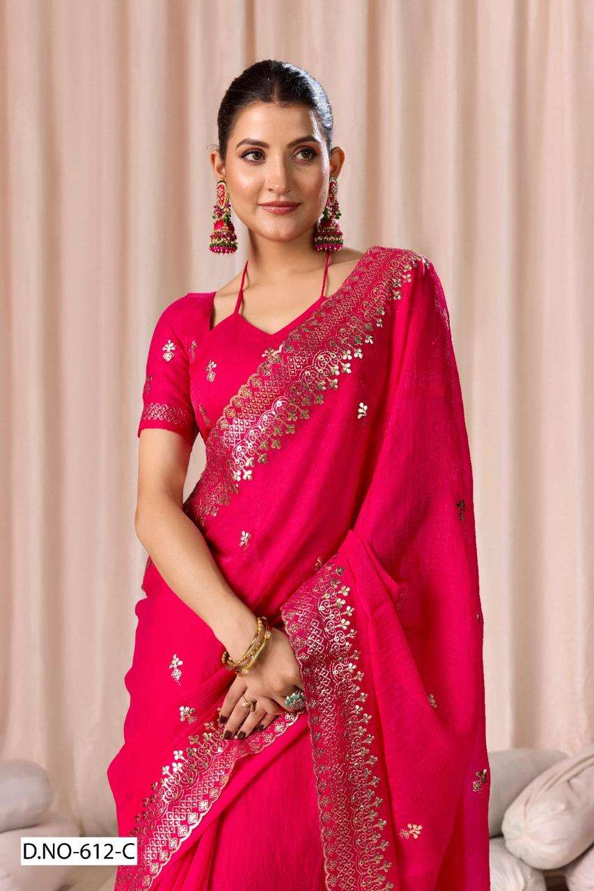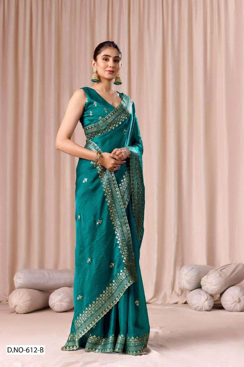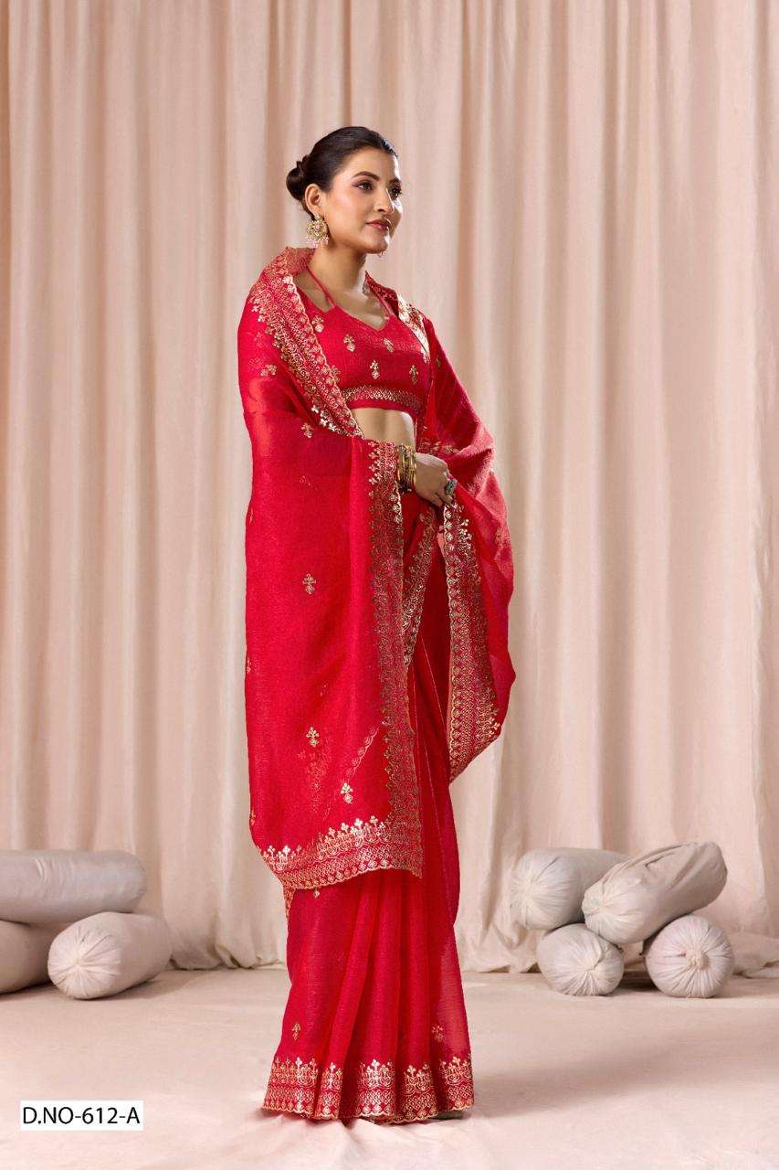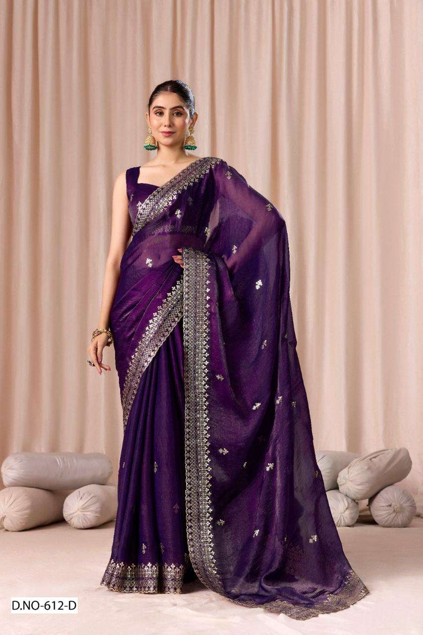 | Catalogue: | SHRI BALAJI PRESENTS 612 TO 612D FENDI CHIFFON PITHA WORK PARTY WEAR SAREE COLLECTION |