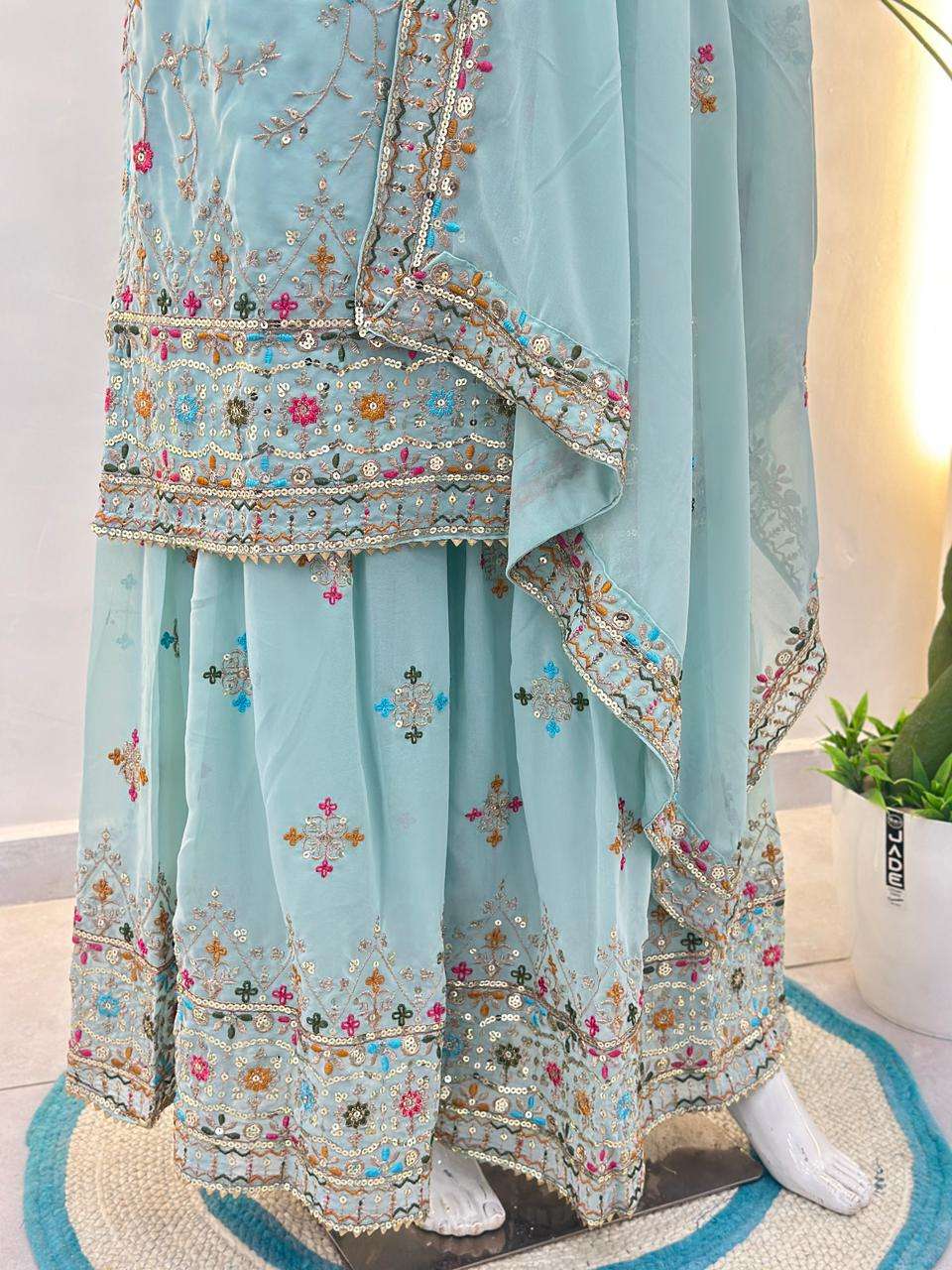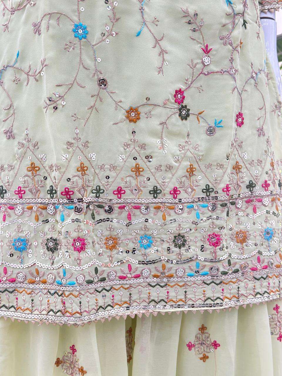 Sharara Work: Embroidery Sequence Thread Zari Work