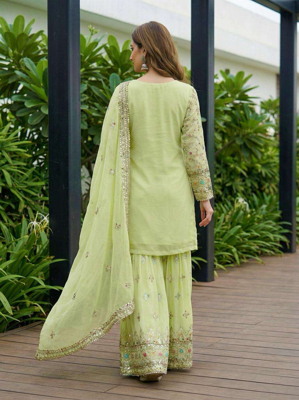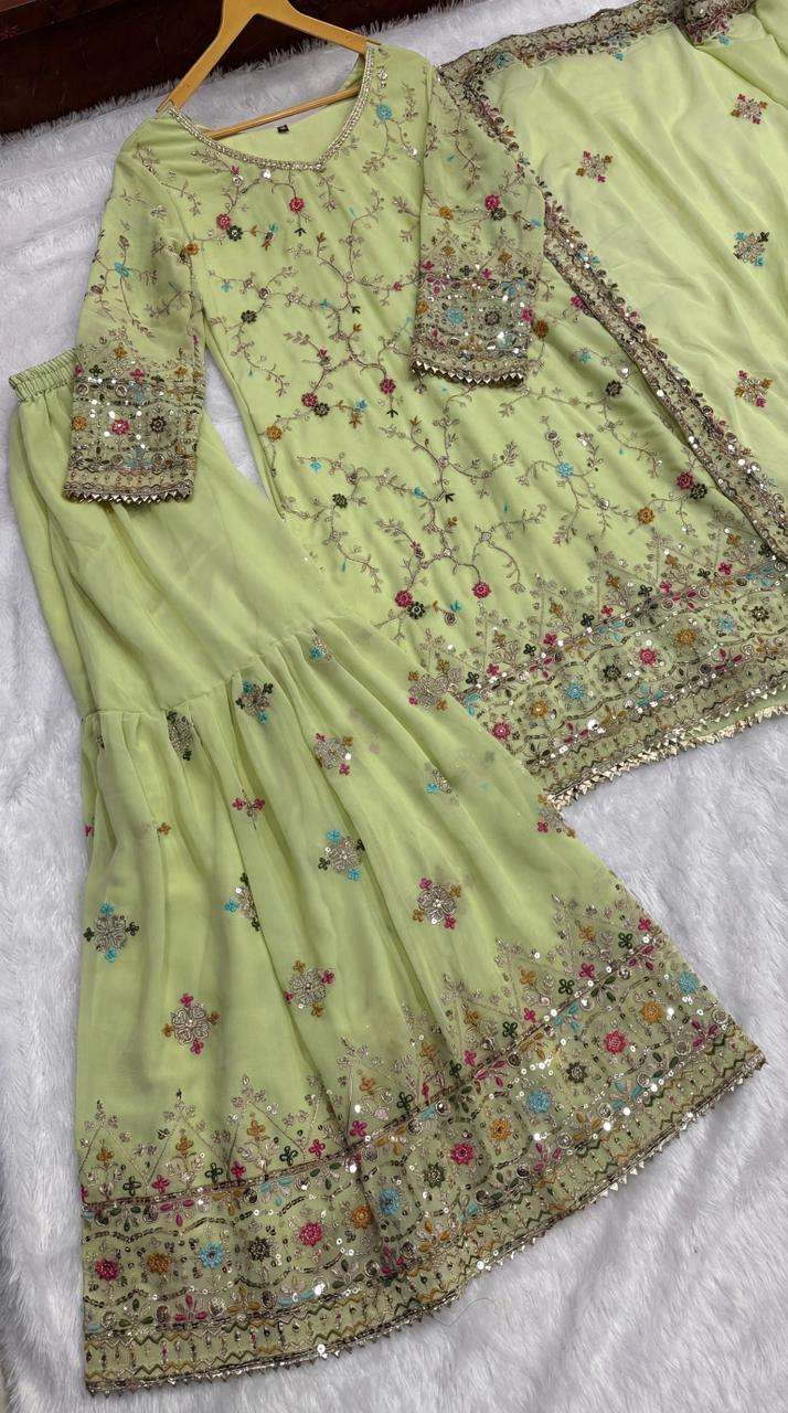 Dipped in delicate mint and adorned with intricate embroidery. Loving this stunning Sharara set for a festive occasion!