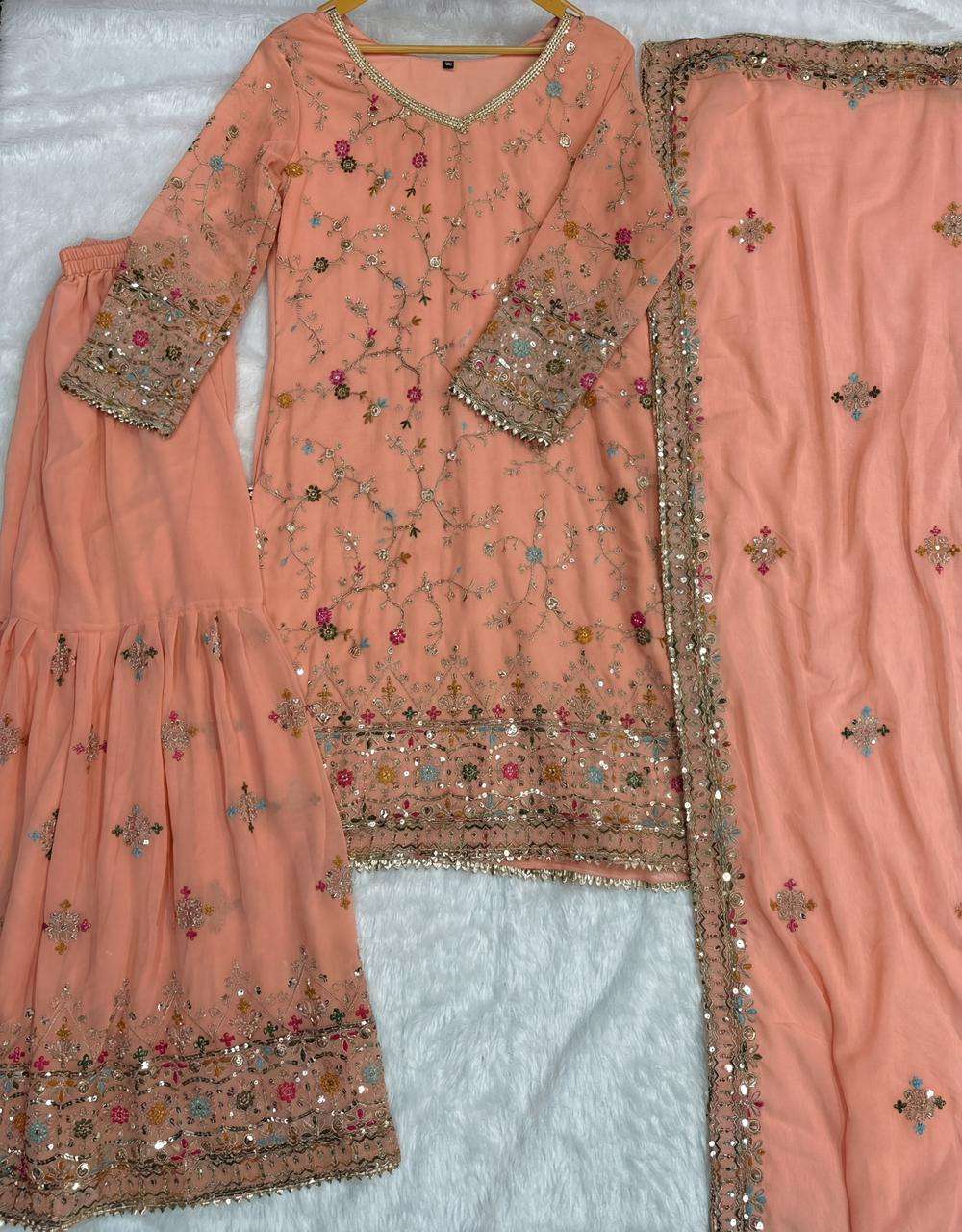 | Catalogue: | SHRI BALAJI PRESENTS DB 5038 FAUX GEORGETTE EMBROIDERED PAKISTANI SHARARA SUIT FOR WHOLESELLERS |