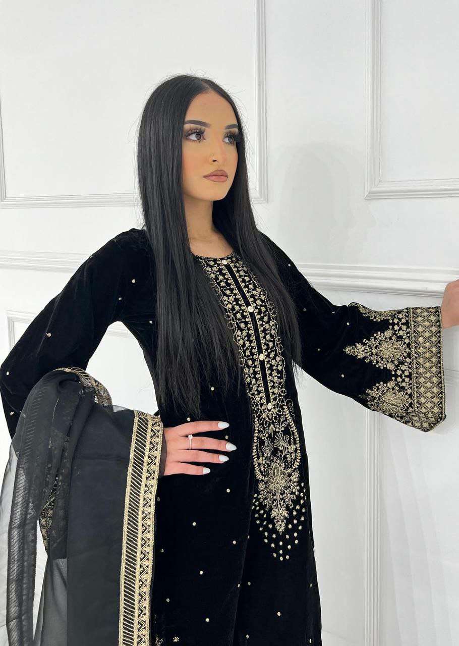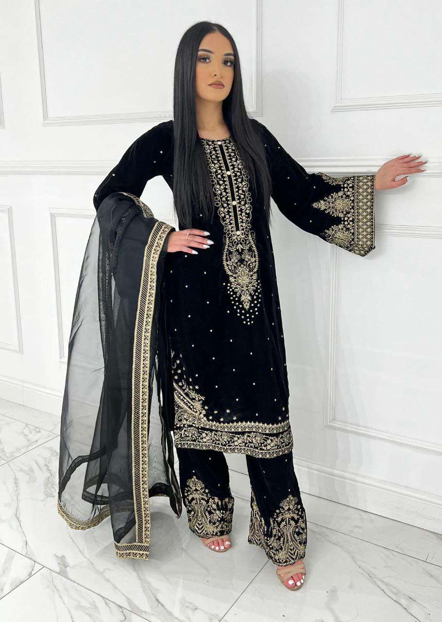| Catalogue: | SHRI BALAJI PRESENTS DV 25340 READY TO WEAR SEQUENCE EMBROIDERED VELVET SUIT |