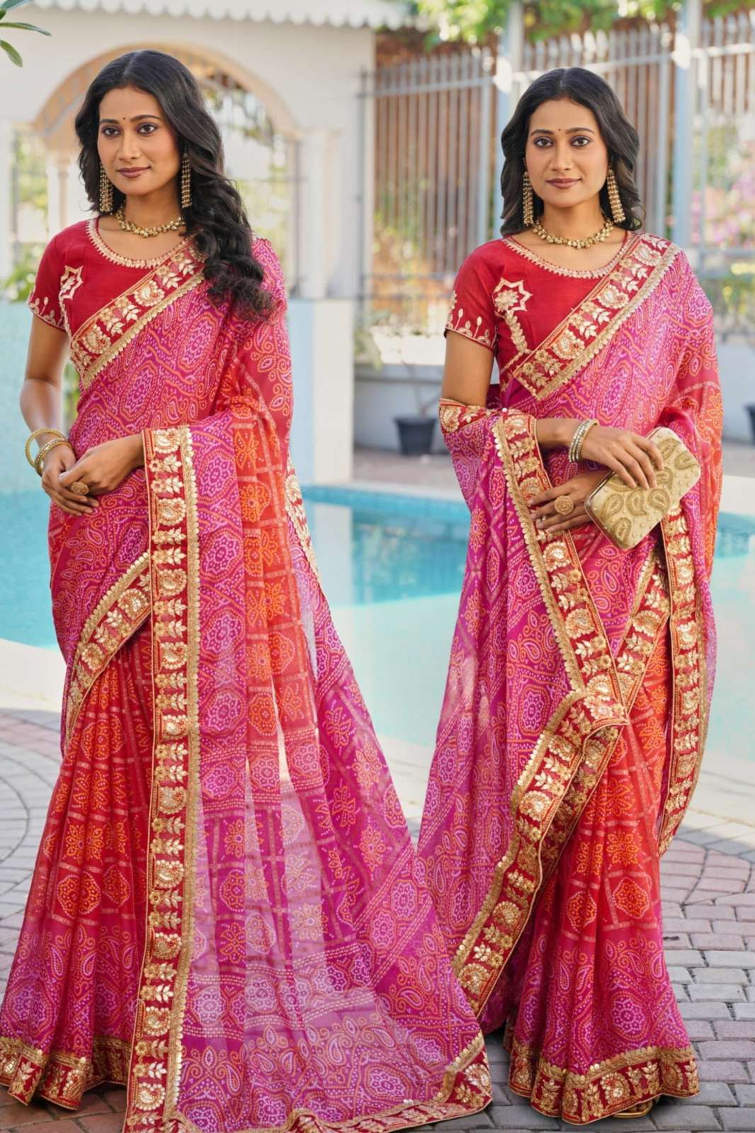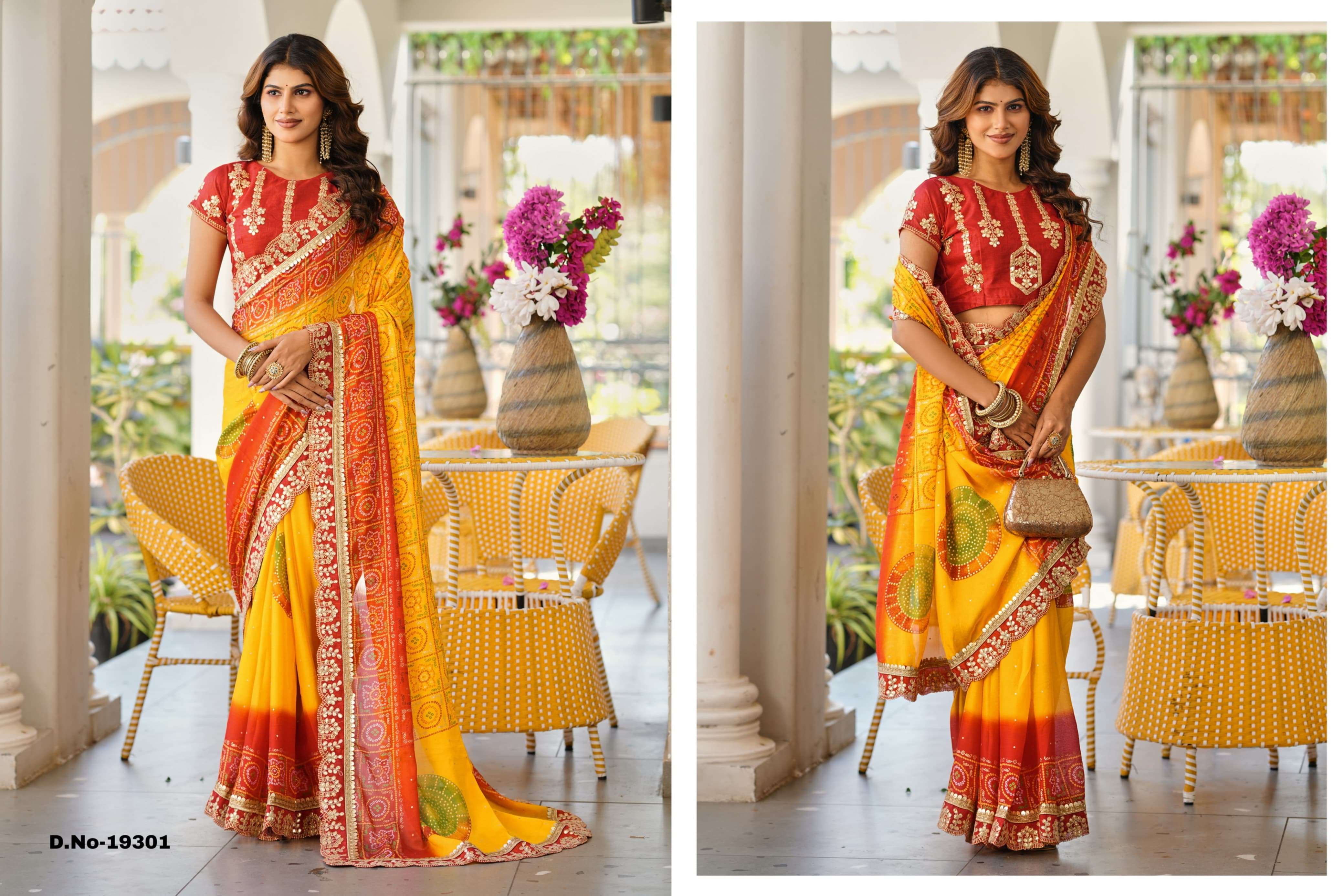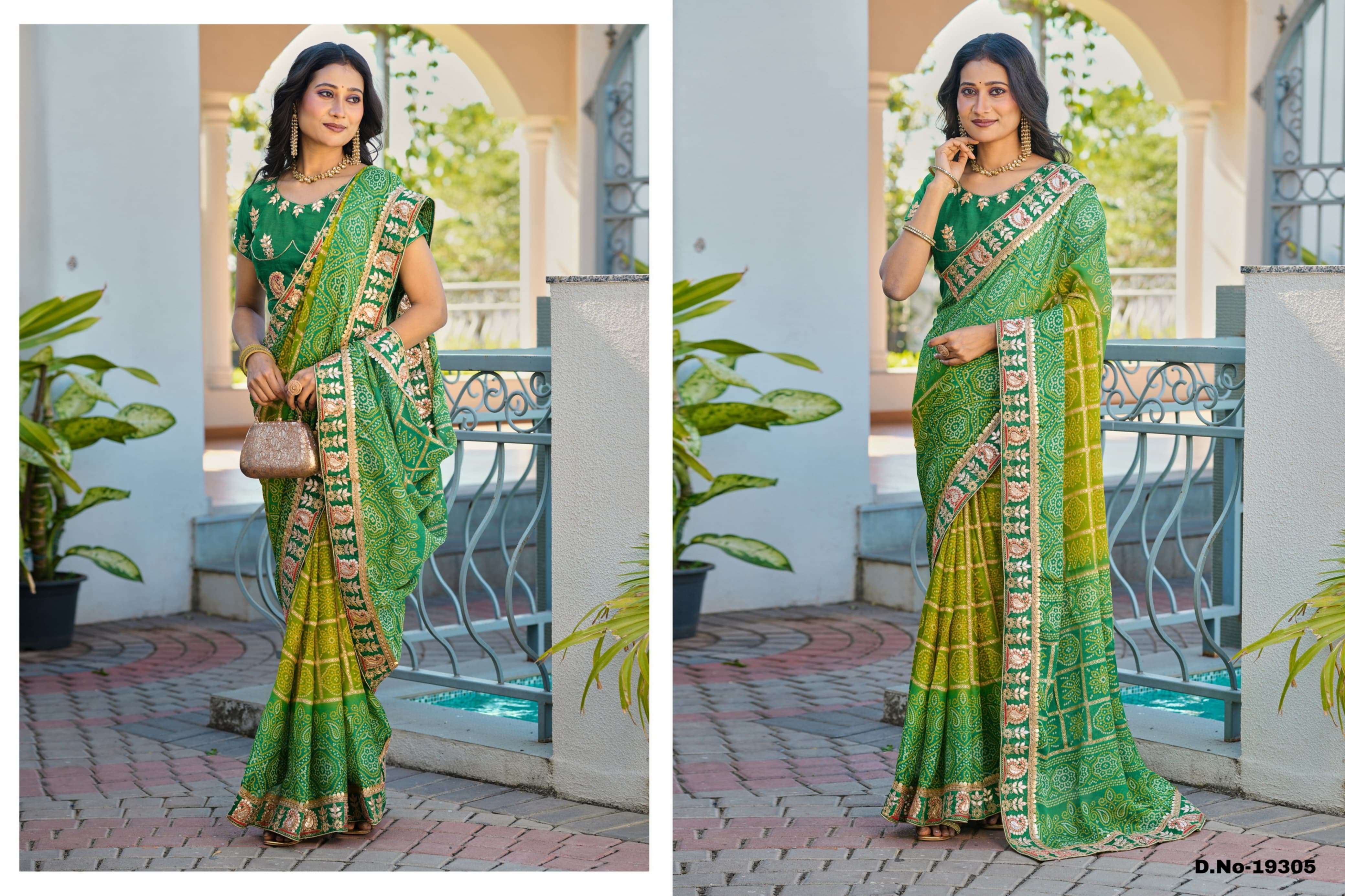 NEW FANCY PRINT BANDHANI CATALOGUE WITH HEAVY WORK BLOUSE & WORK LACE