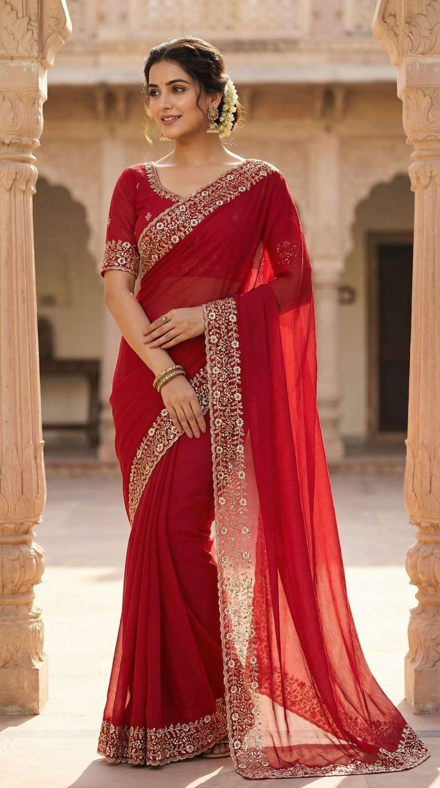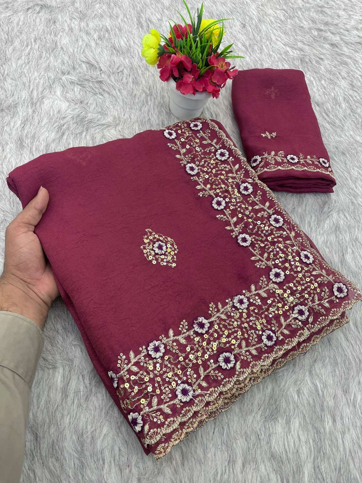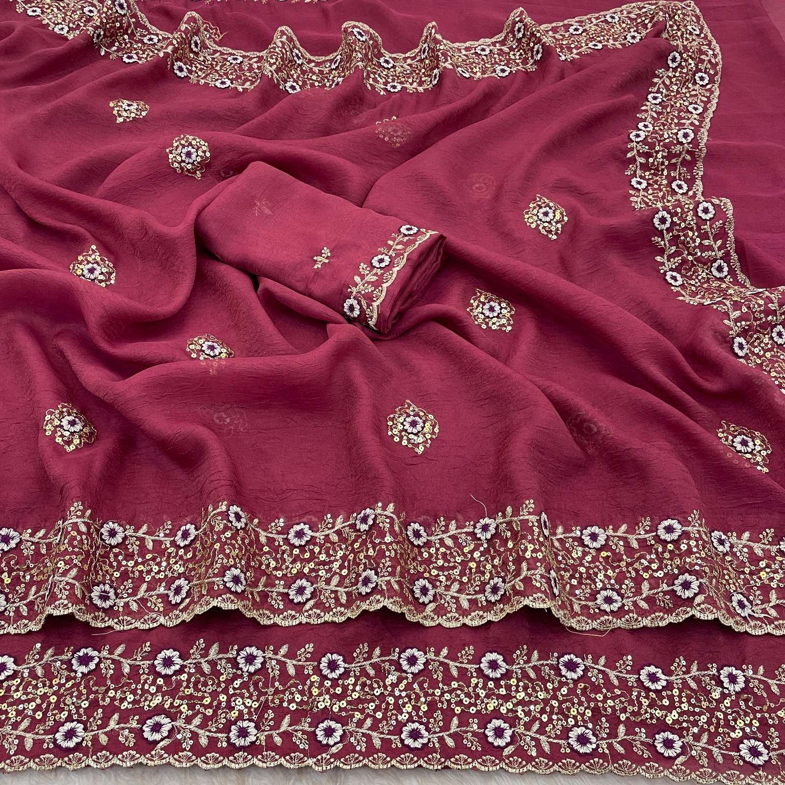 Saree:- Very soft & elegant rich look Tissue sonic crush fabric with beautiful embroidery 3+5(Dual) mm sequence work heavy border with buttis in all over saree aarco