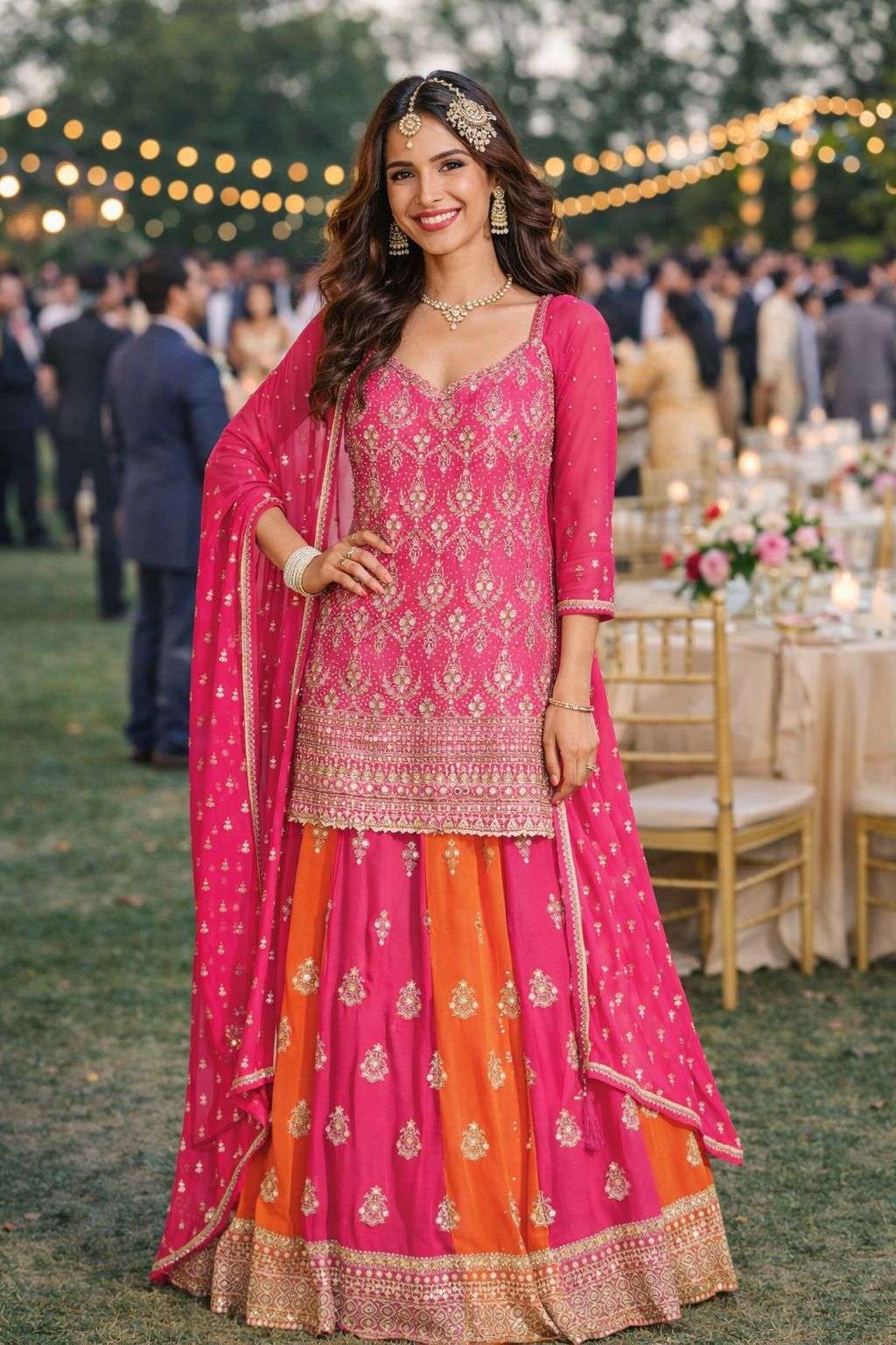 FABRIC - PREMIUM REAL GEROGETTE (HEAVY LOOK EMBROIDERED TOP WITH HAND SEROSKI AND FRONT BACK EMBROIDERED LEHENGHA & PLAZZO WITH EMBROIDERED DUPATTA)