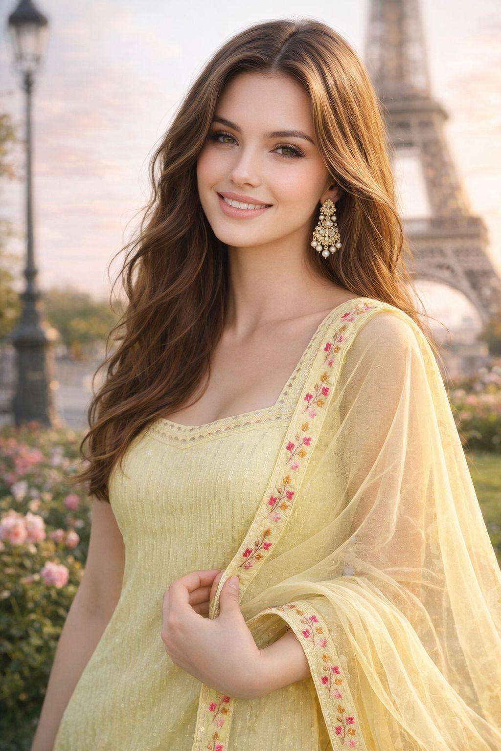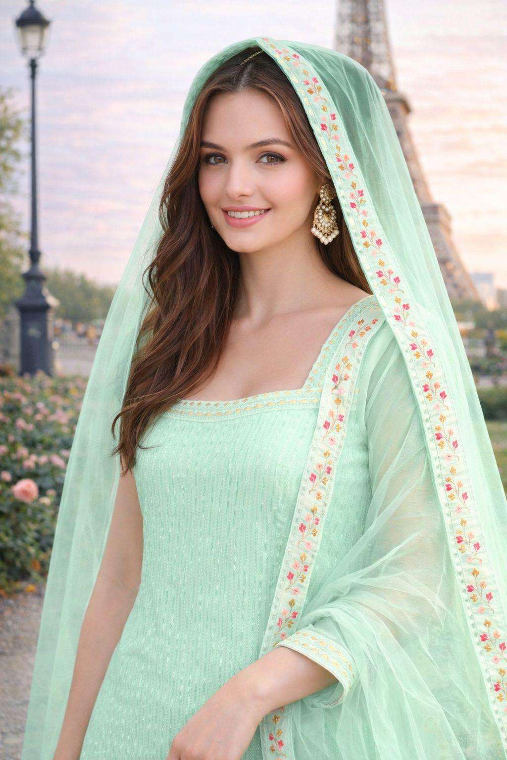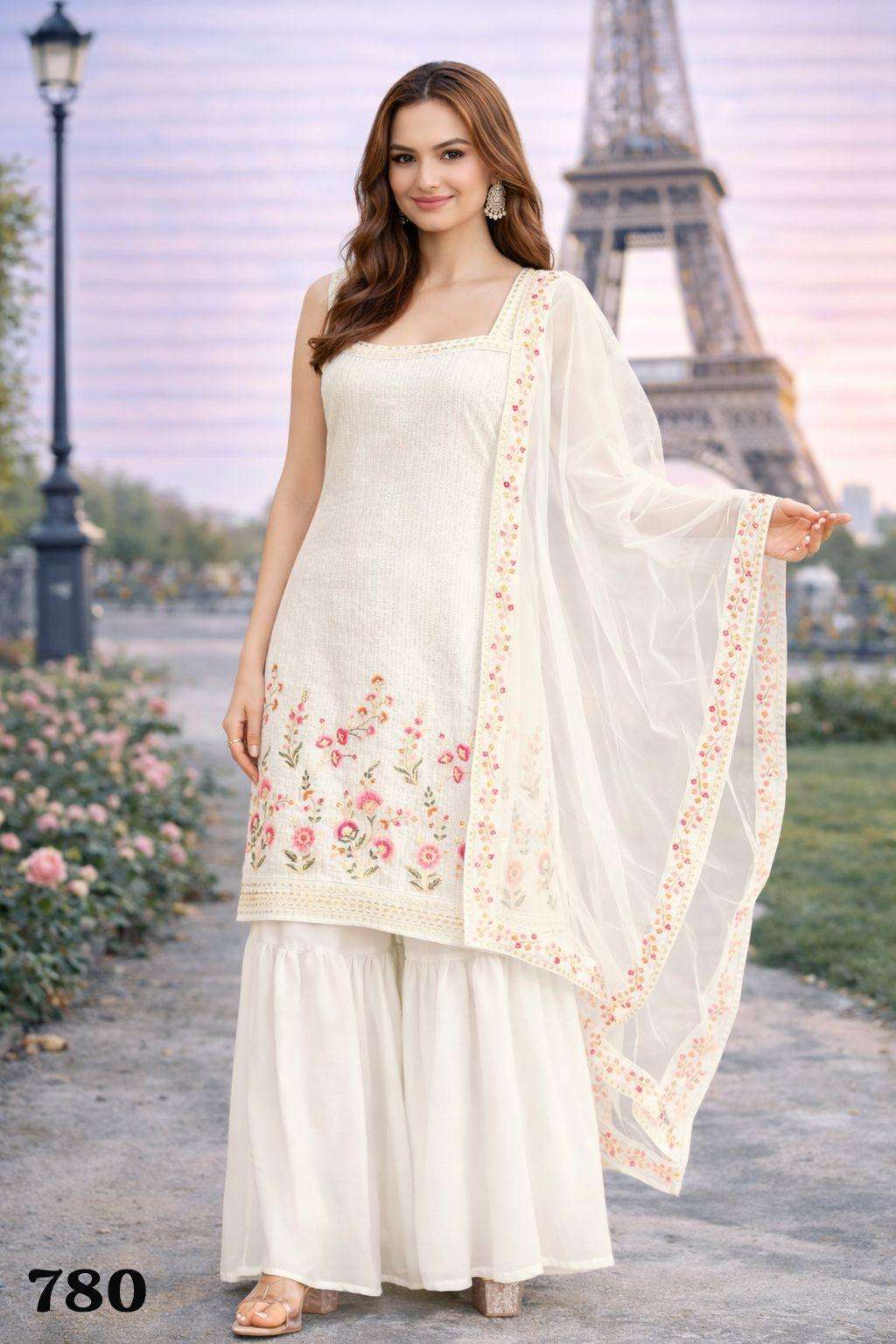 FABRIC - REAL PREMIUM GEORGETTE ( HEAVY EMBROIDERED & SEQUENCE WORK TOP WITH SHARARA PANT AND DUPATTA )