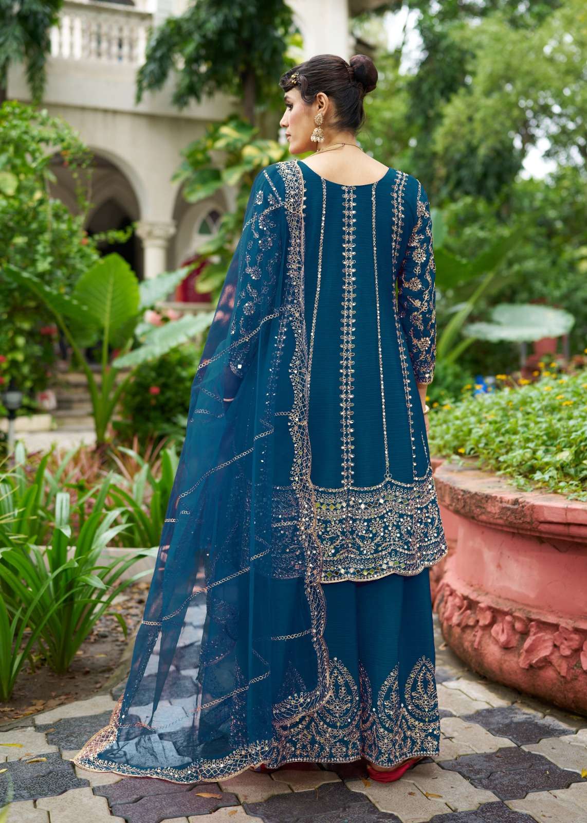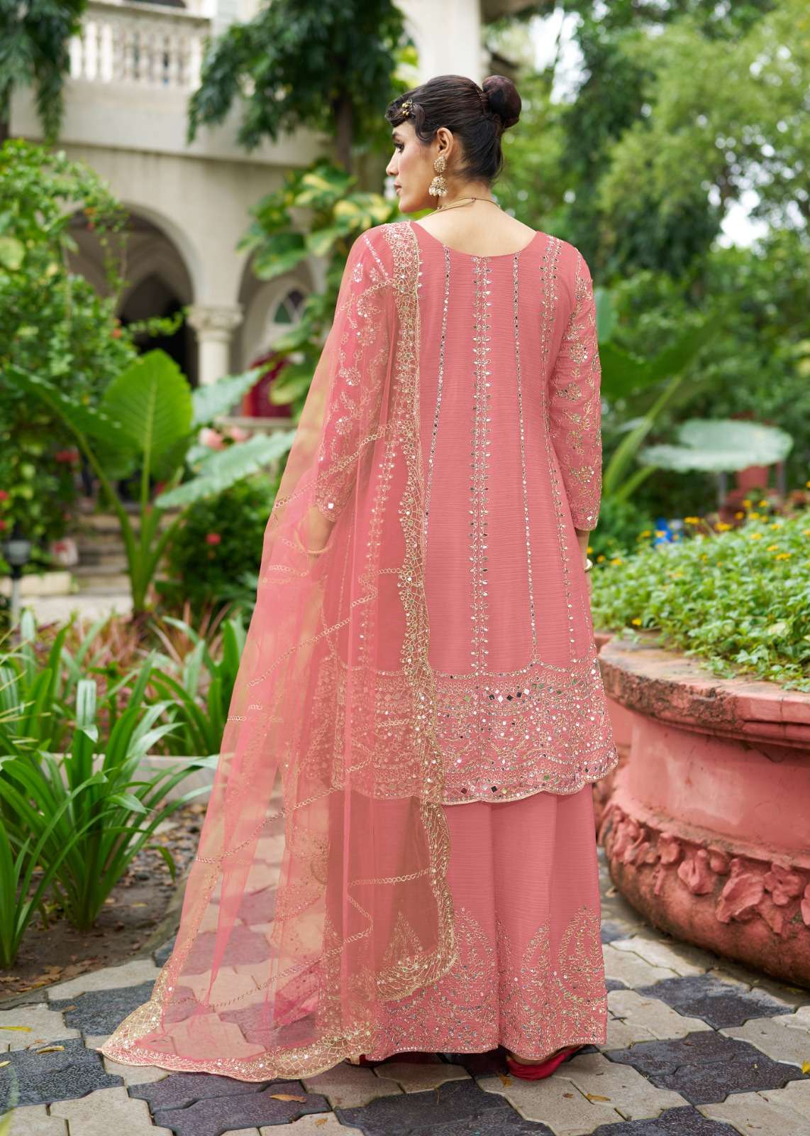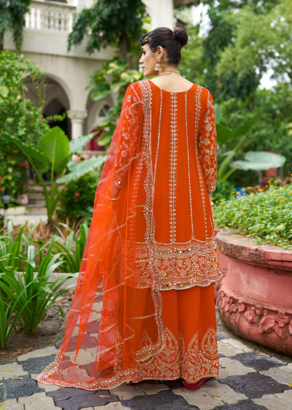 SHARARA -Chinon With Beautiful real mirror Embroidery.(BOTH SIDE WORK )