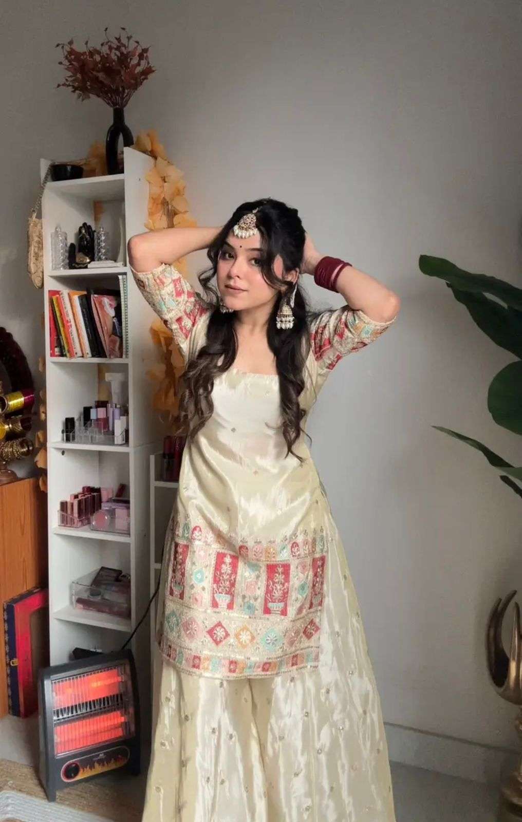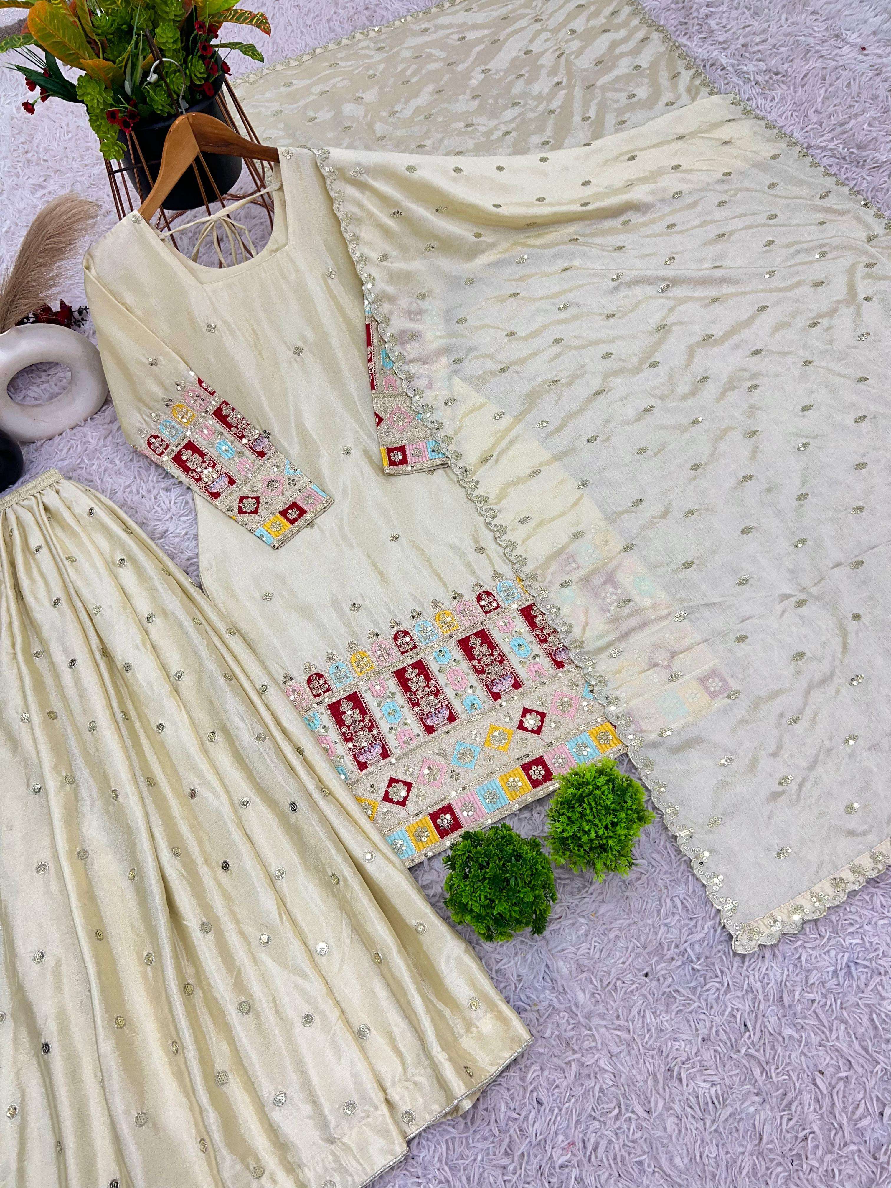 Gharara Fabrics : Heavy Chinon Silk With Heavy Embroidery Sequence Work