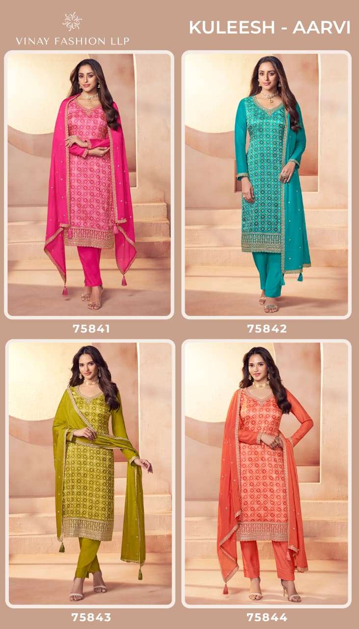 | Catalogue: | SHRI BALAJI PRESENTS VINAY KULEESH AARVI EMBROIDERED MOGA SILK WITH POSITION PRINT SUIT COLLECTION |