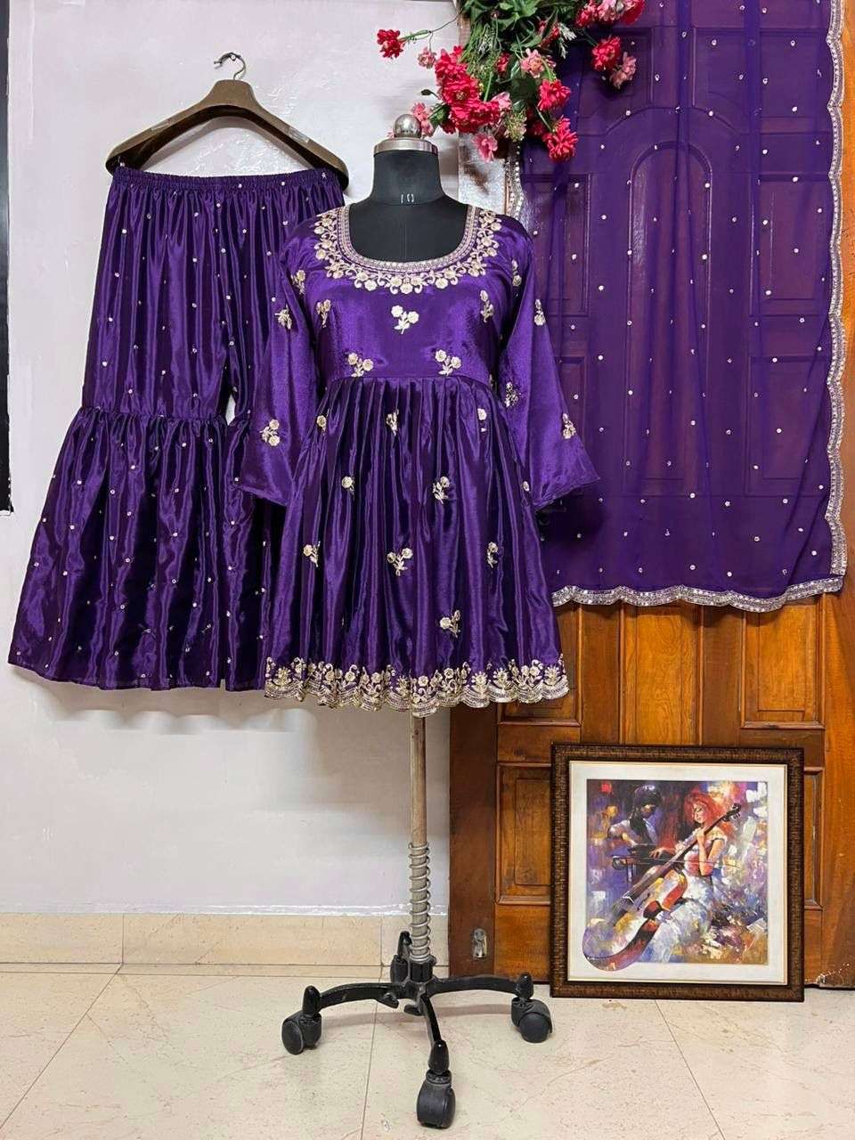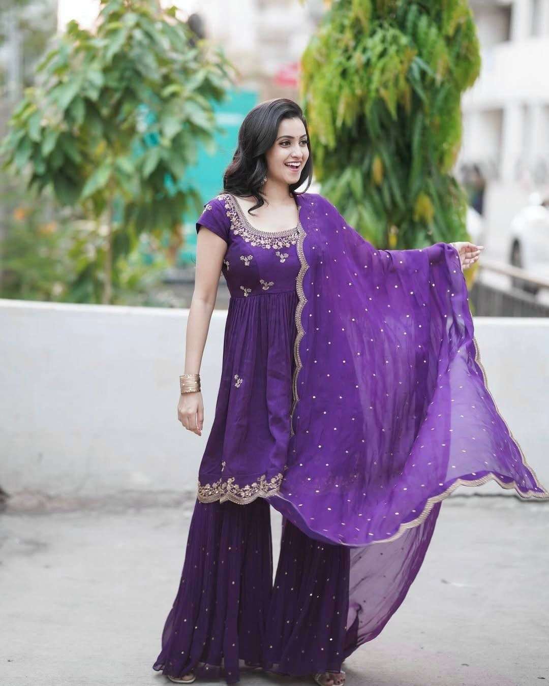 Fully stitched top, sharara & one dupatta
