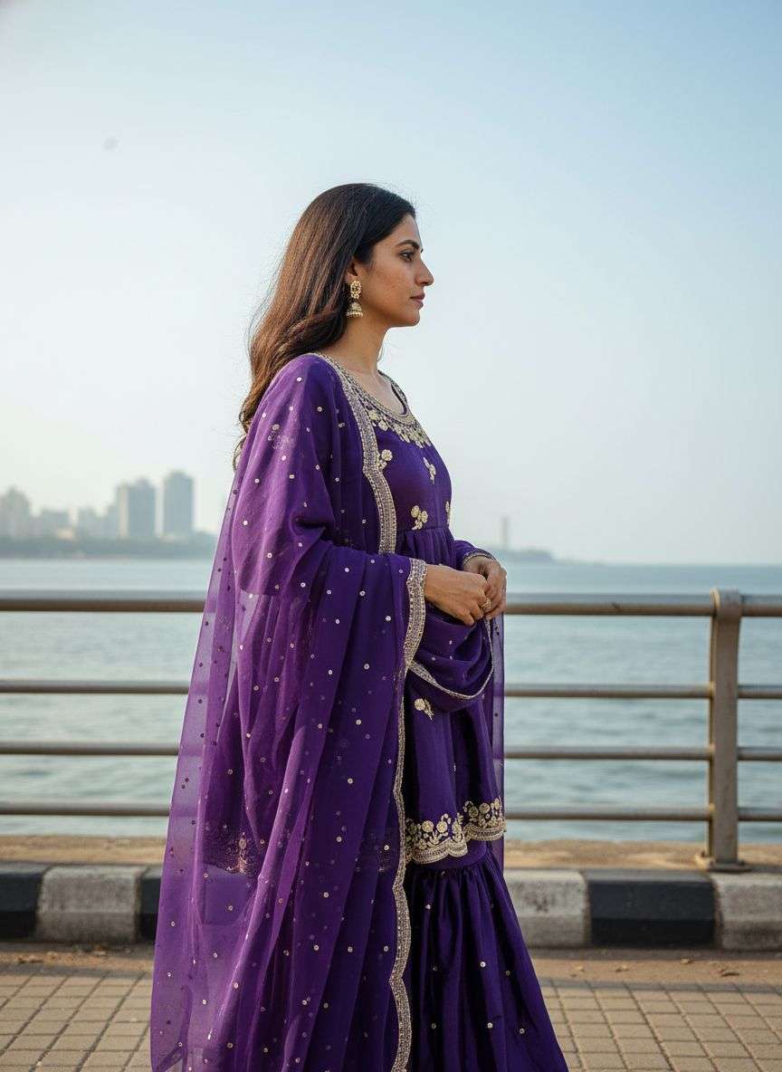 VF series Presents Royal Purple color Kediya Style Ensemble