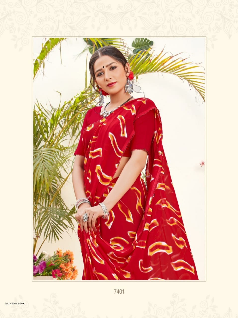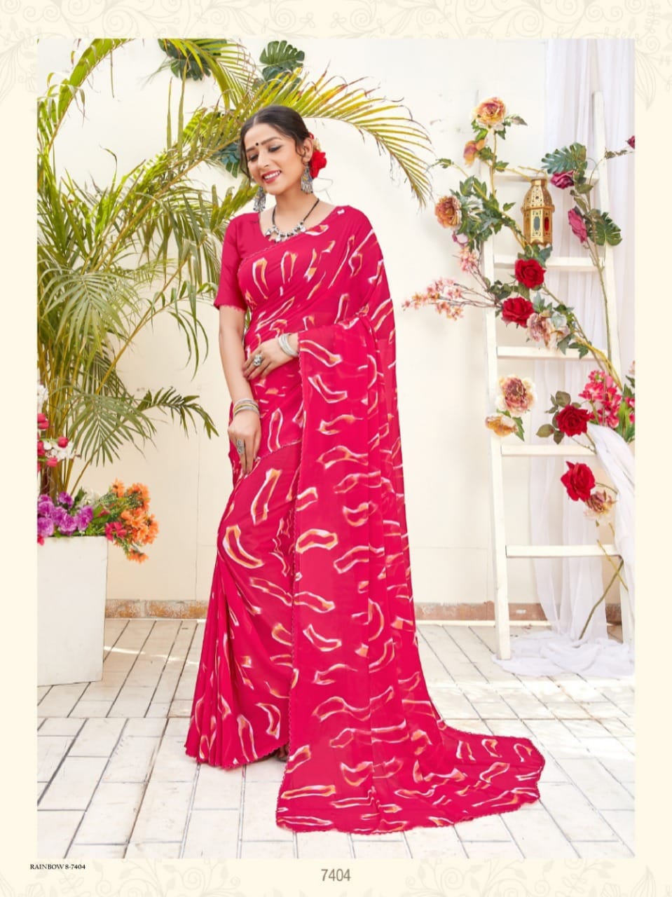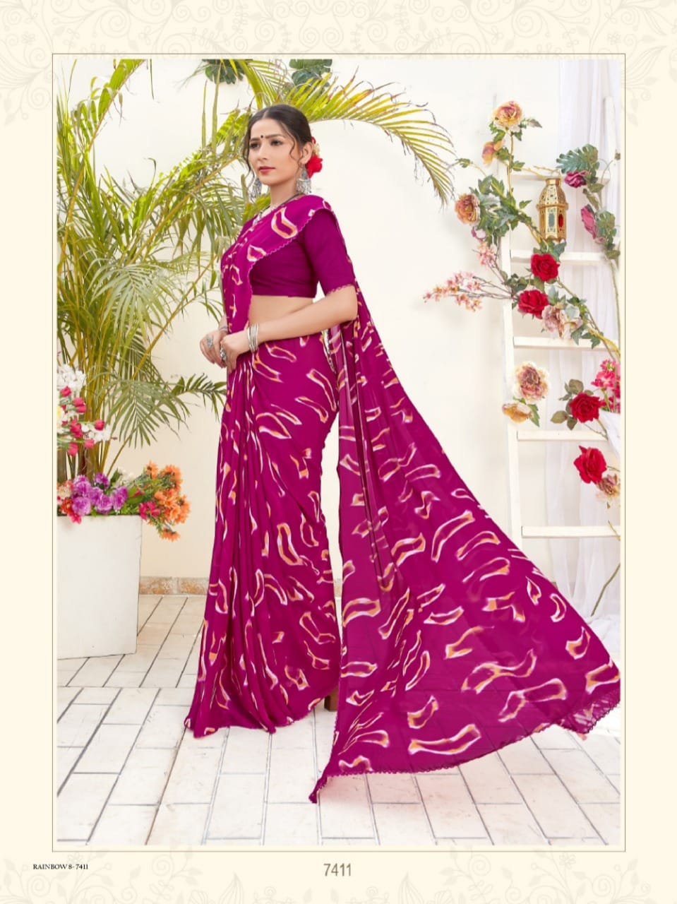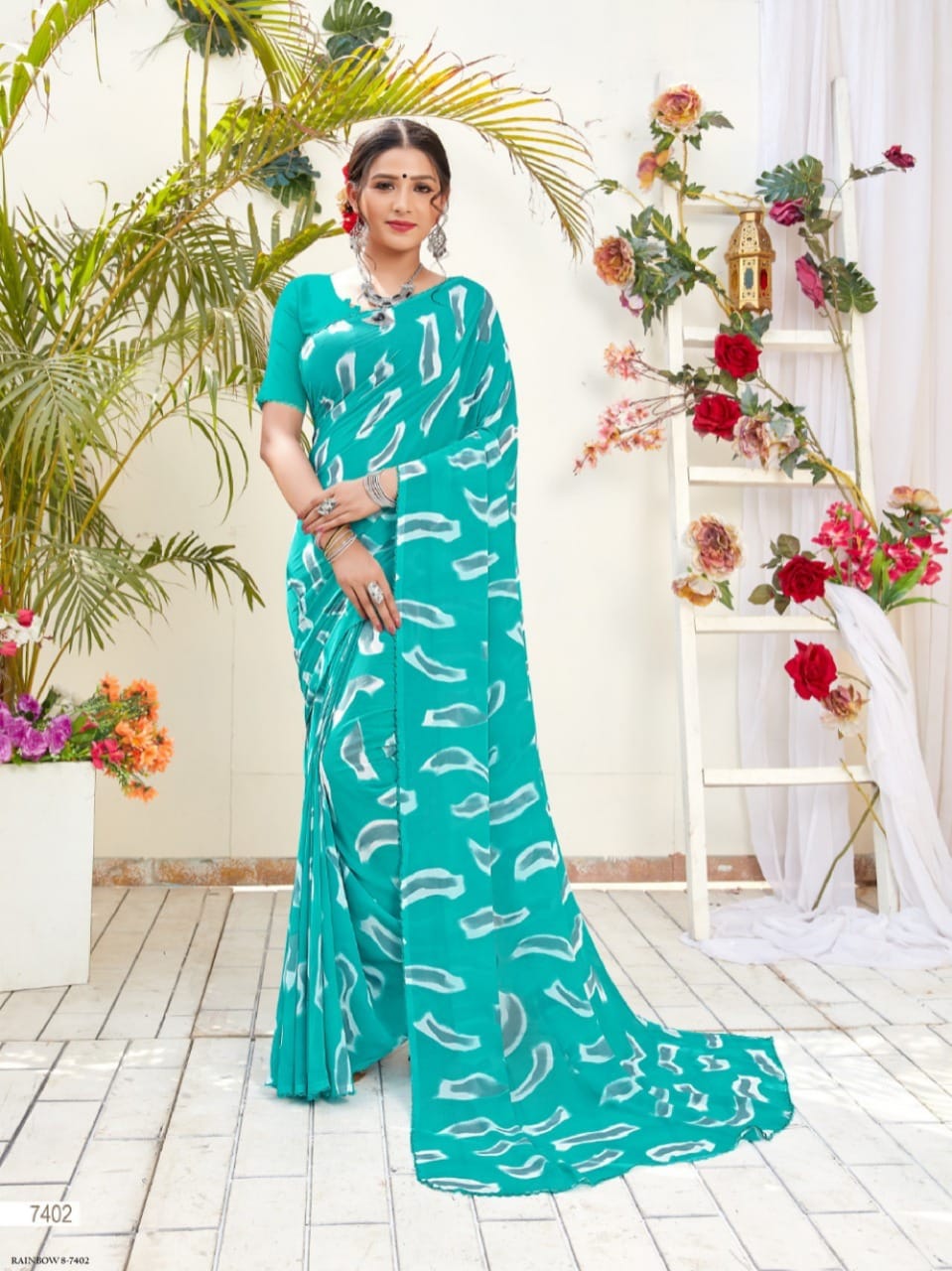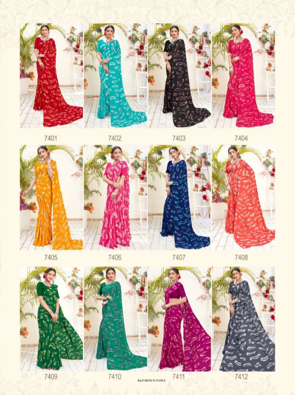 Shri Mataaram Presents Rainbow Vol-8 7401 - 7412 Series Beautiful Georgette With Arc Border Fancy Casual Wear Saree Collection