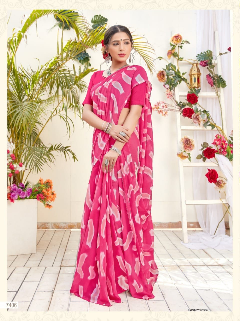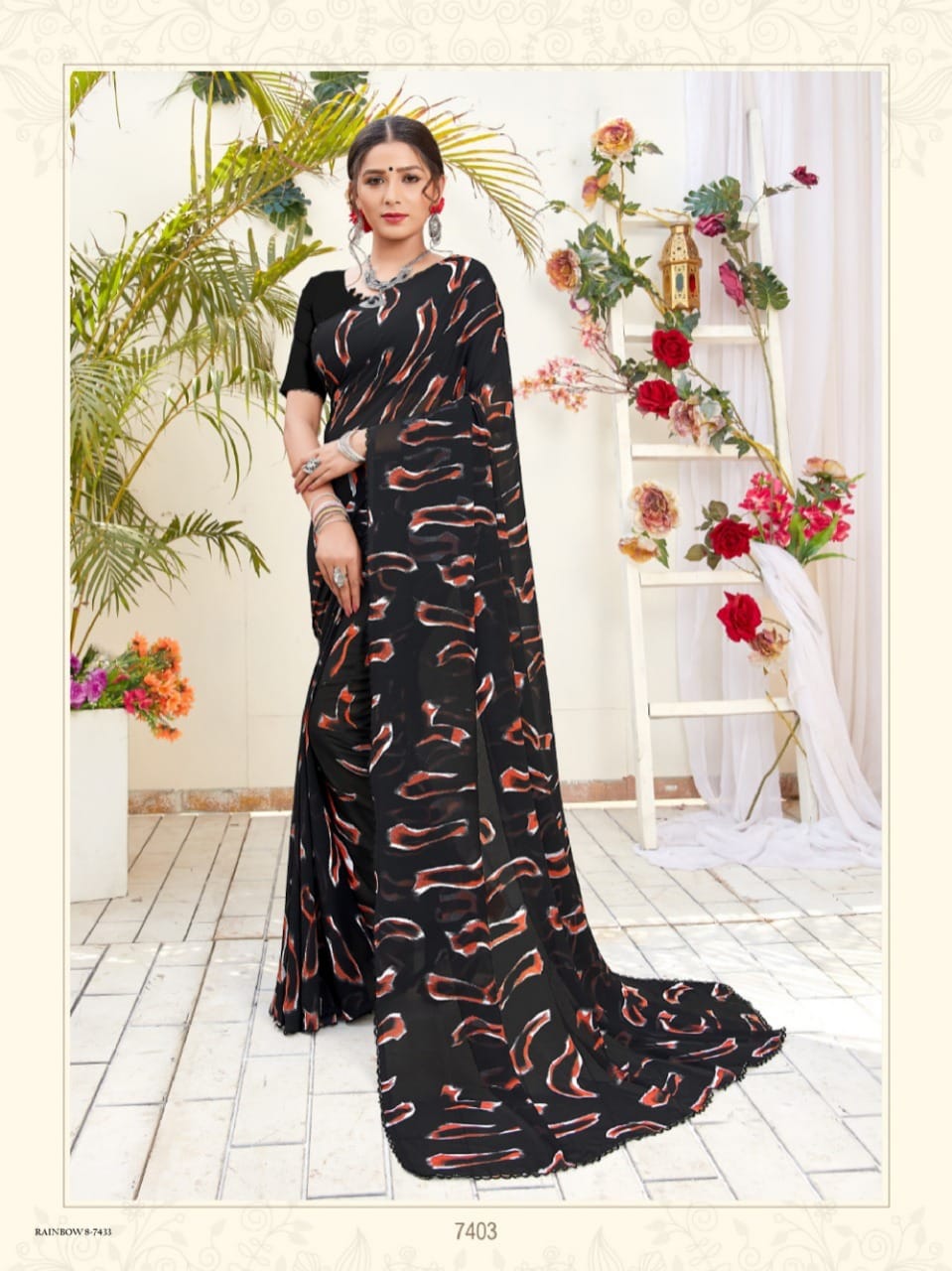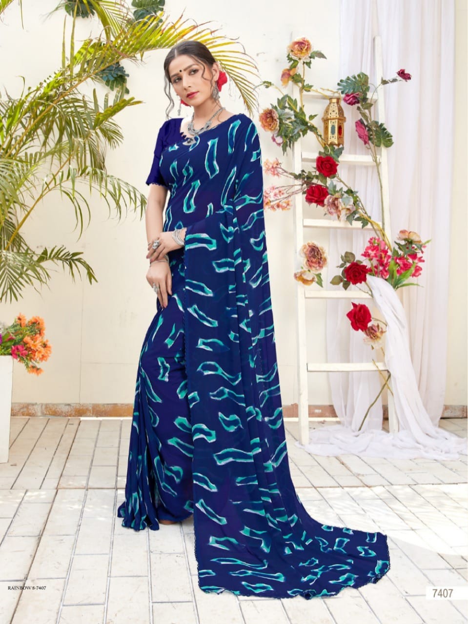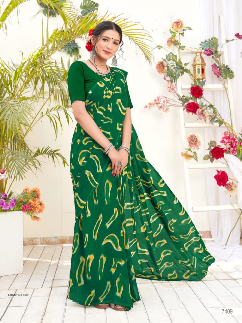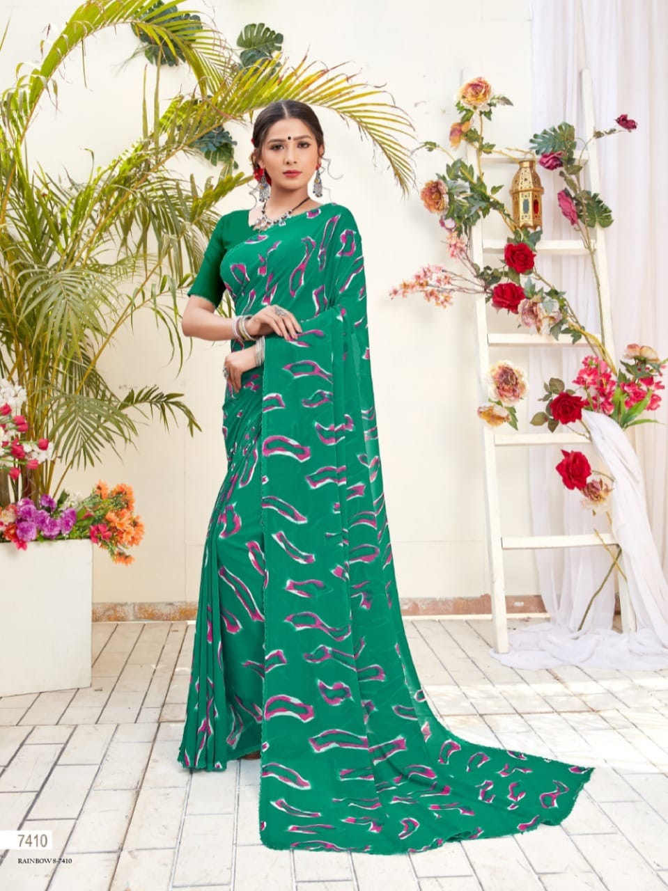 Shri Mataaram Presents Rainbow Vol-8 7401 - 7412 Series Beautiful Georgette With Arc Border Fancy Casual Wear Saree Collection
