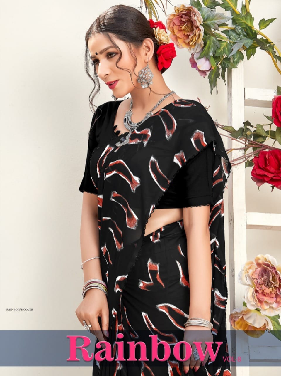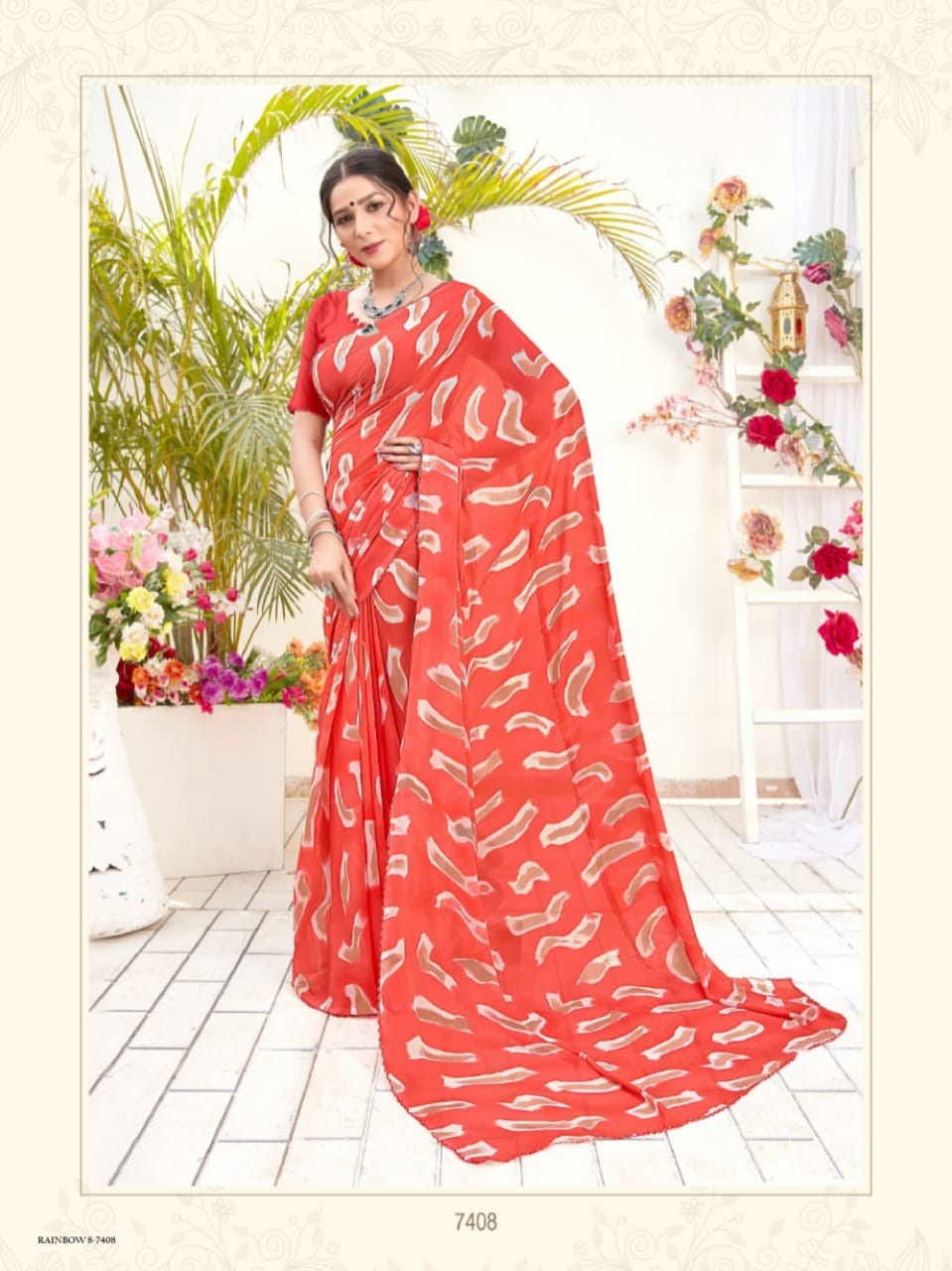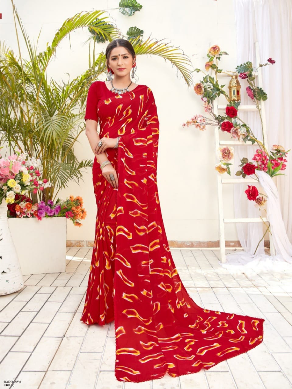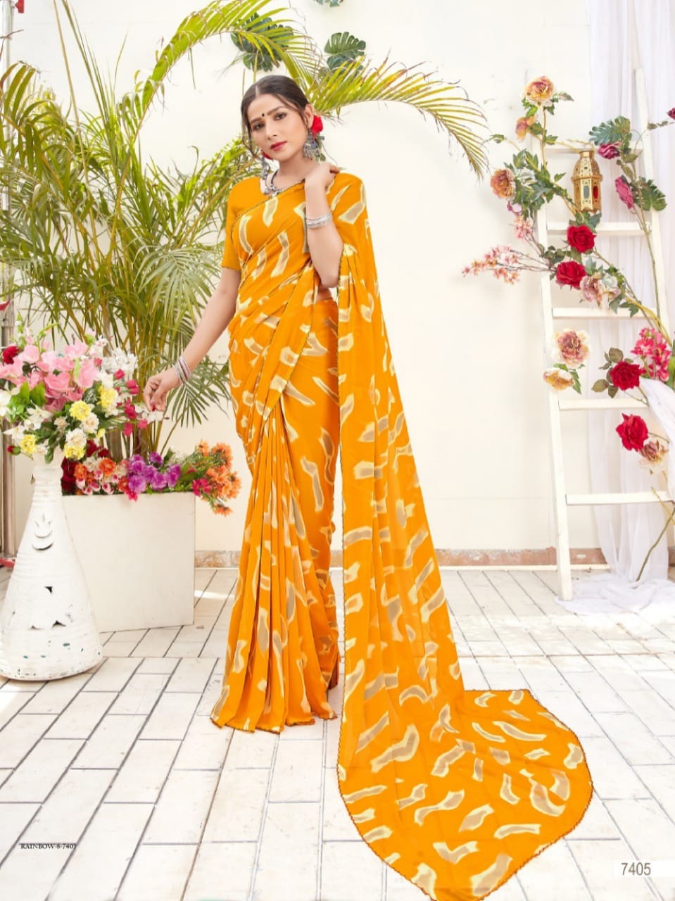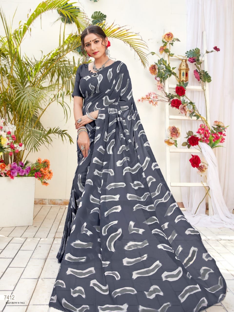 Shri Mataaram Presents Rainbow Vol-8 7401 - 7412 Series Beautiful Georgette With Arc Border Fancy Casual Wear Saree Collection