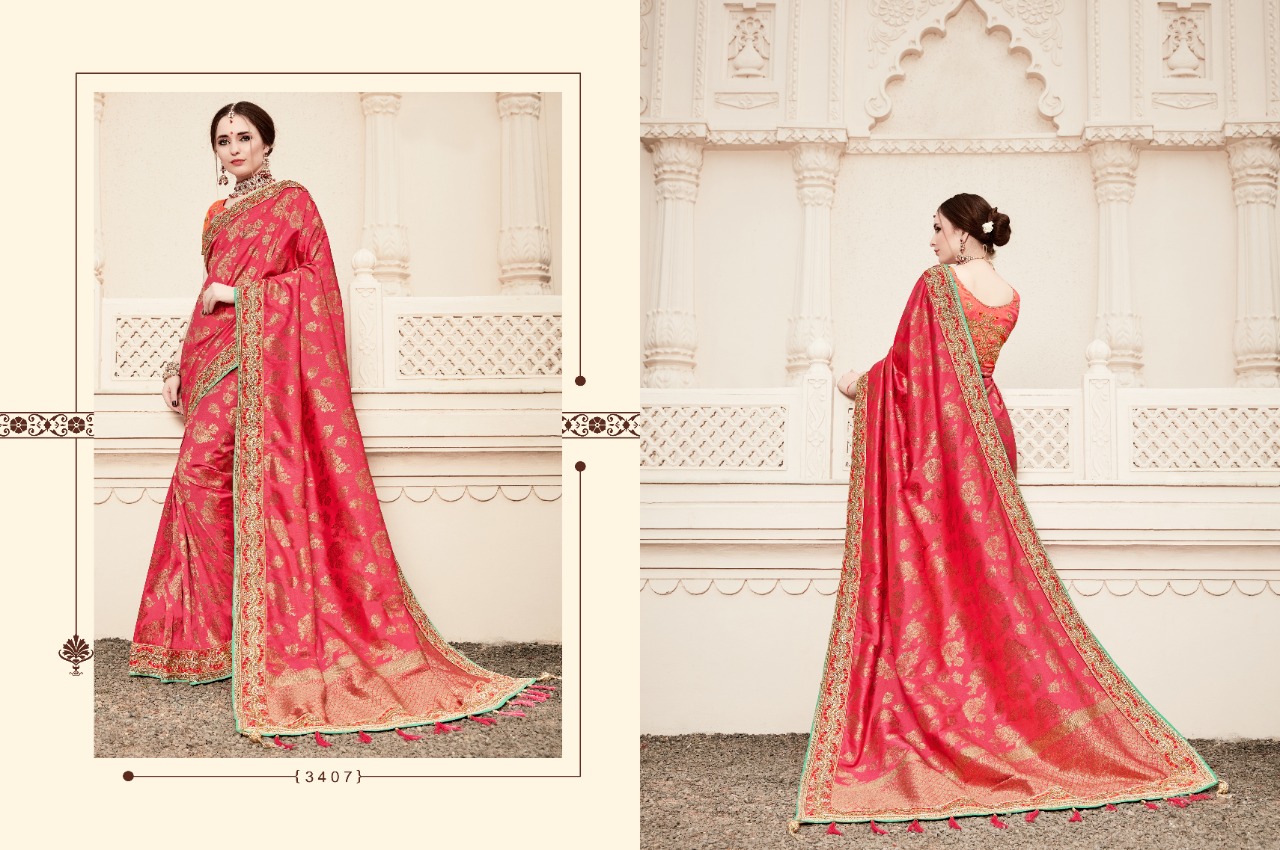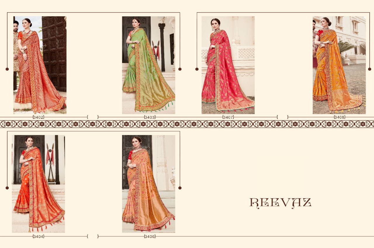 Shri Mataaram Presents Reevaz 3401 - 3409 Series Pure Silk With Embroidery Work Fancy Function Wear Saree Collection