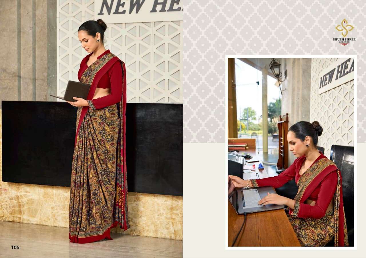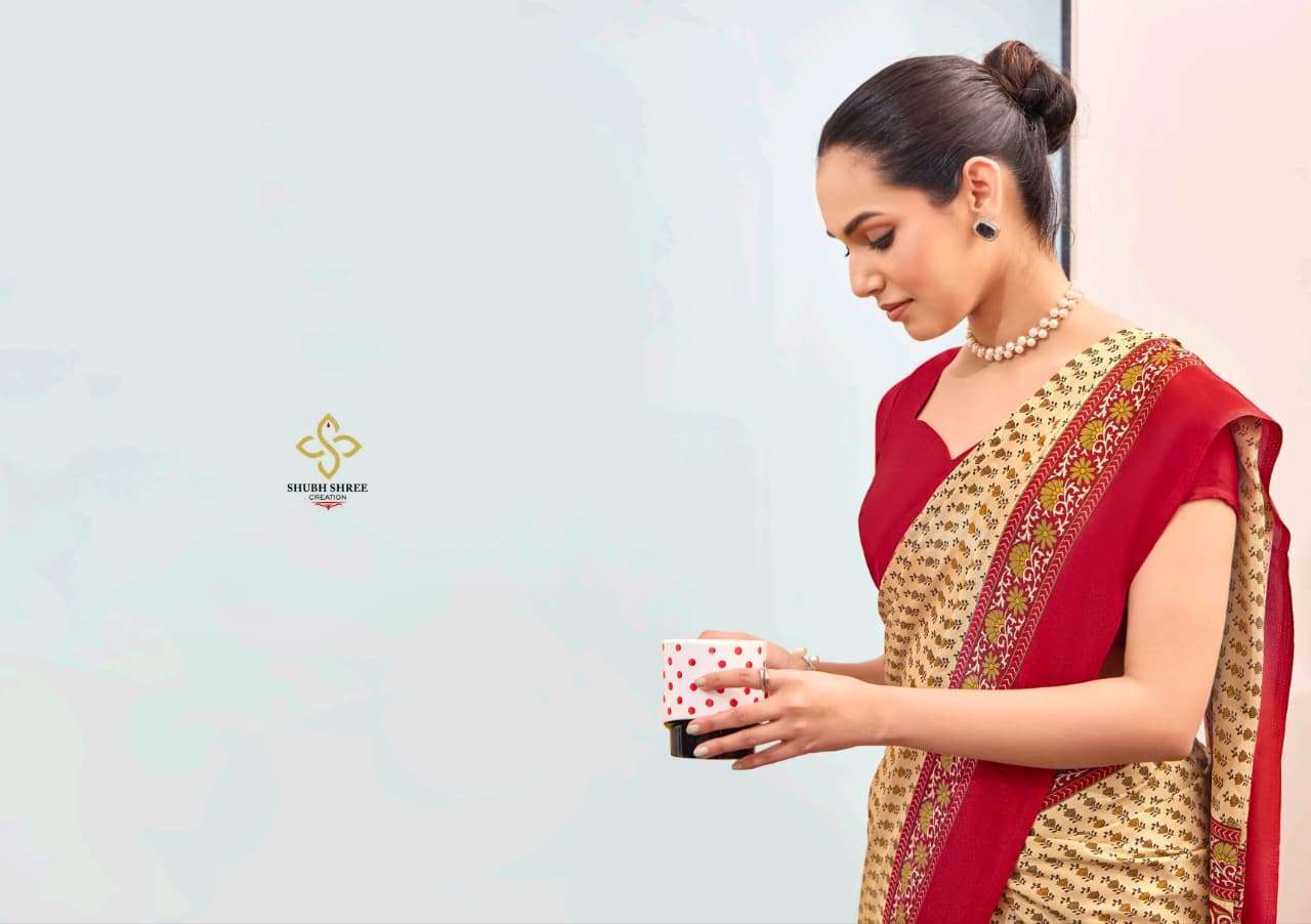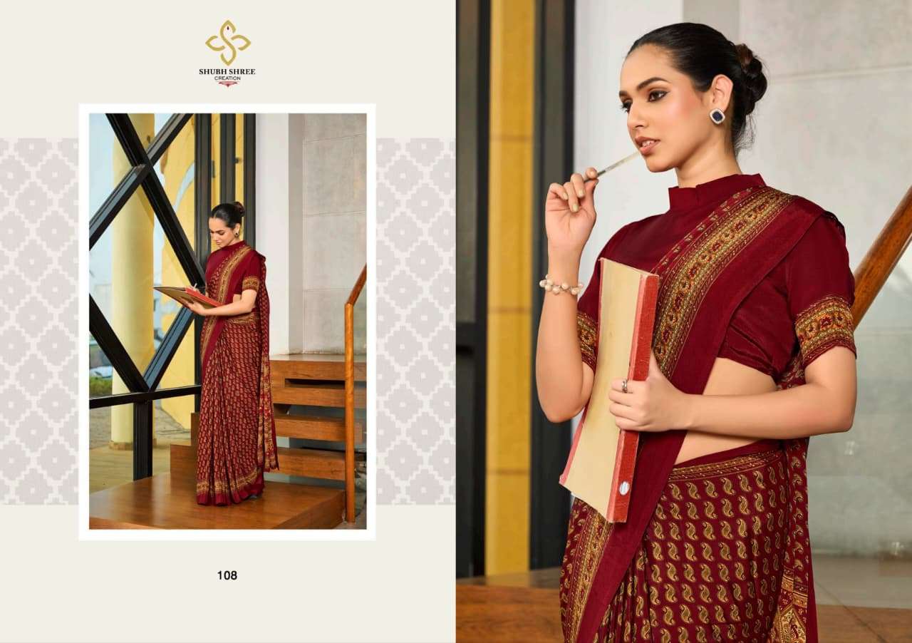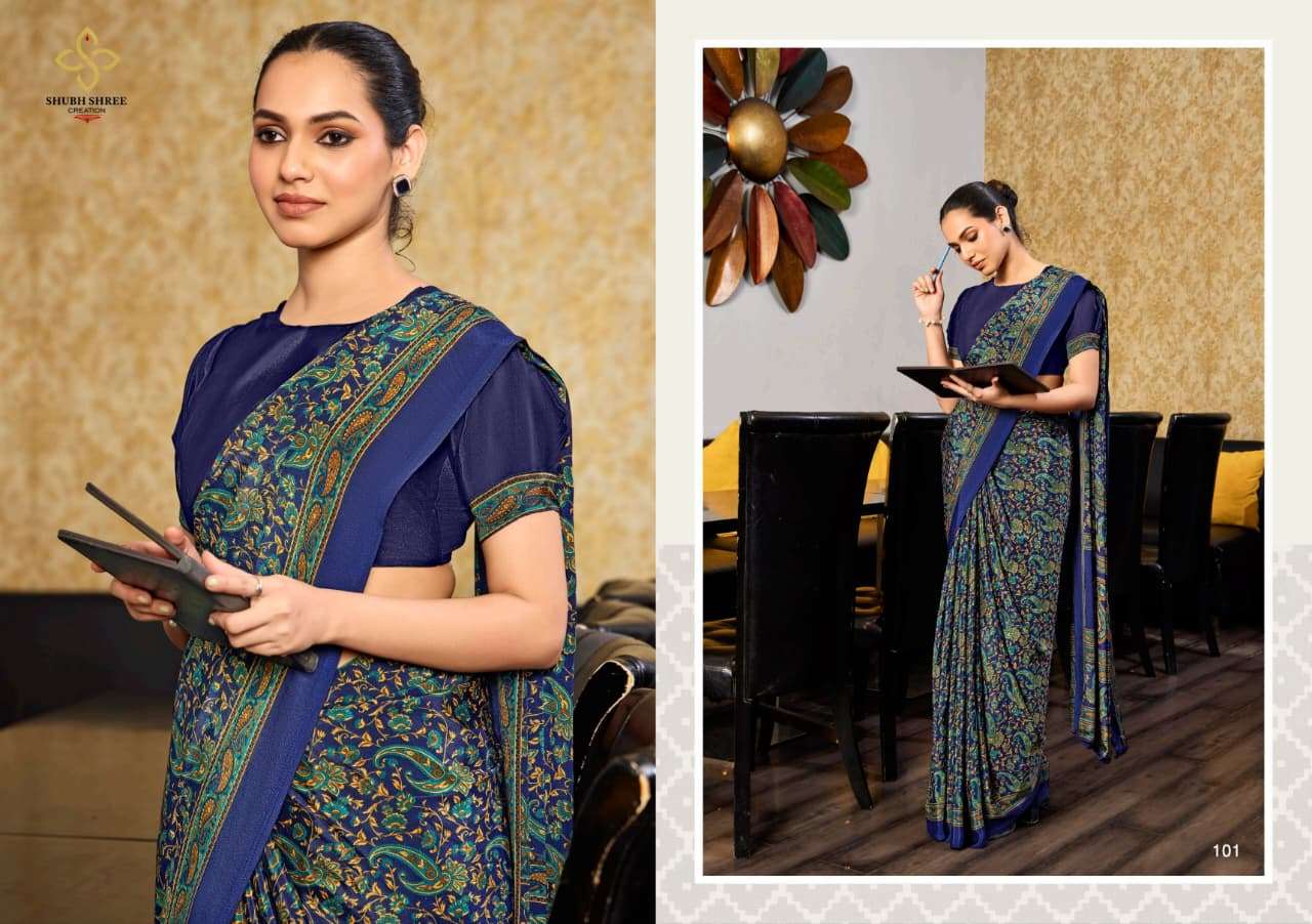 # CLASSIC CREPE PRINTED SAREE WITH UNIFORM COLLECTION #