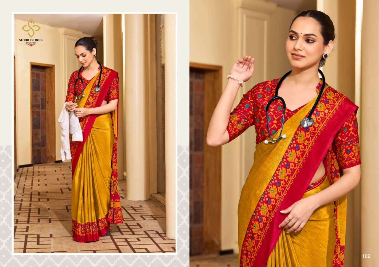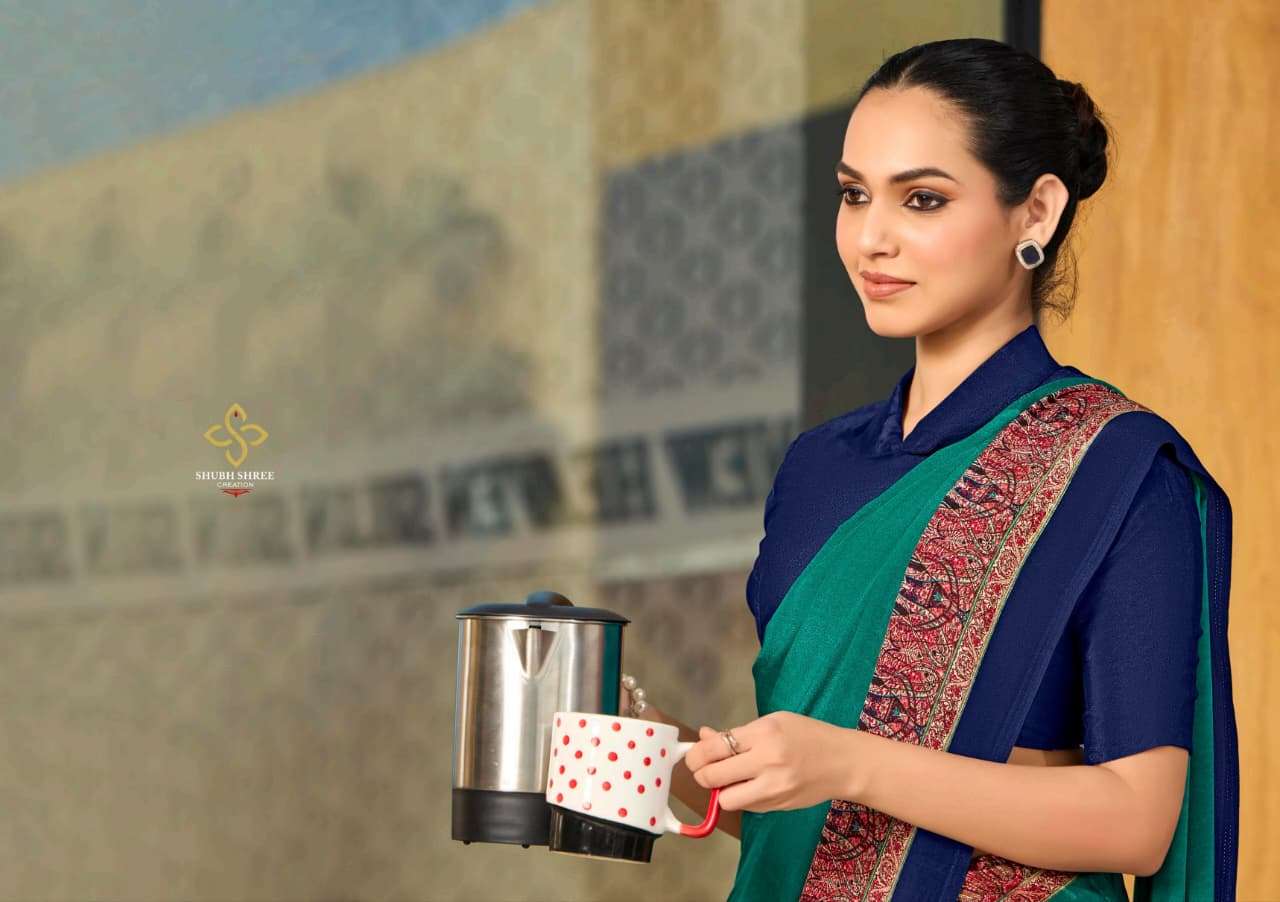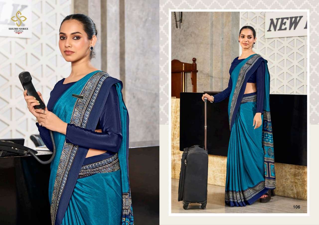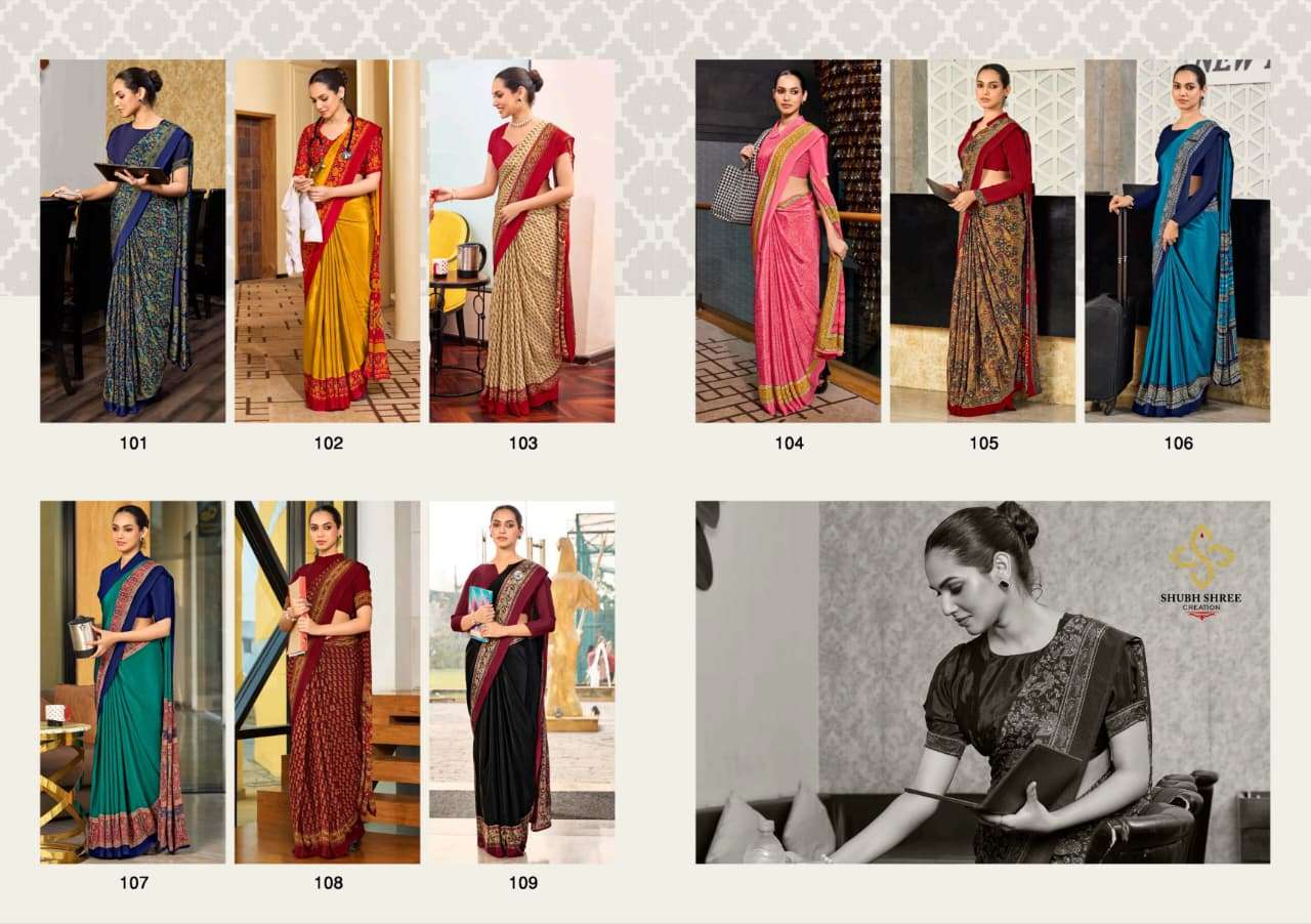 # CLASSIC CREPE PRINTED SAREE WITH UNIFORM COLLECTION #