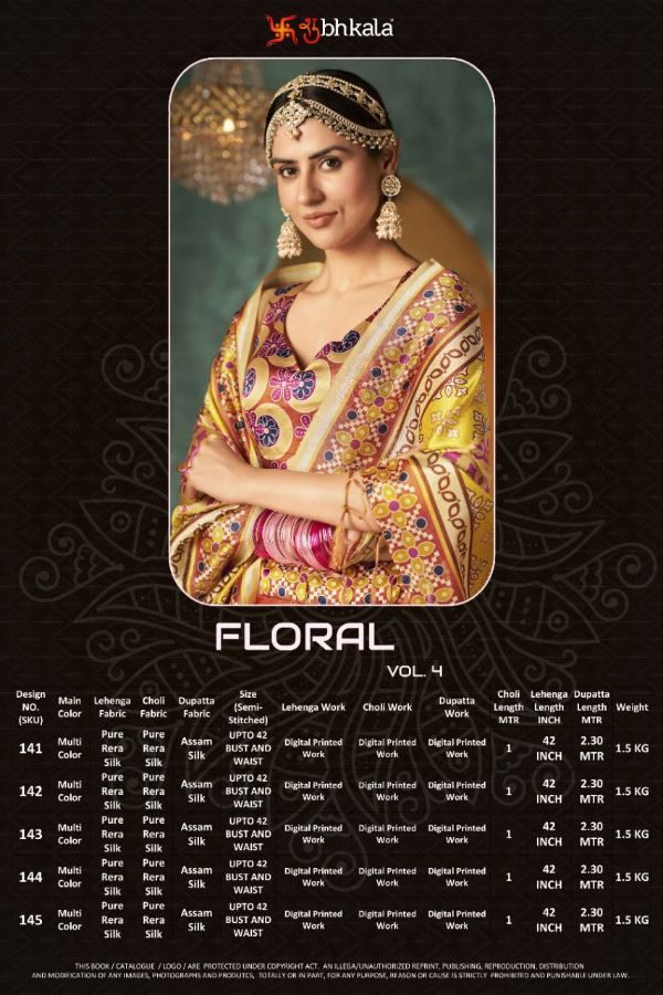 Shubhkala Presents Floral Vol- 4 141 - 145 Series Designer Indian Party Wear Lehenga Choli At Wholesale Price