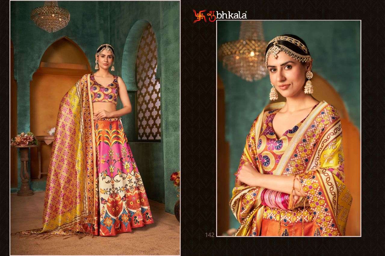 SHUBHKALA PRESENTS FLORAL VOL- 4 141 - 145 SERIES INDIAN WOMEN FANCY SILK LEHENGA CHOLI PARTY WEDDING WEAR TRADITIONAL DIGITAL PRINTED GHAGRA CHOLI COLLECTION 2587