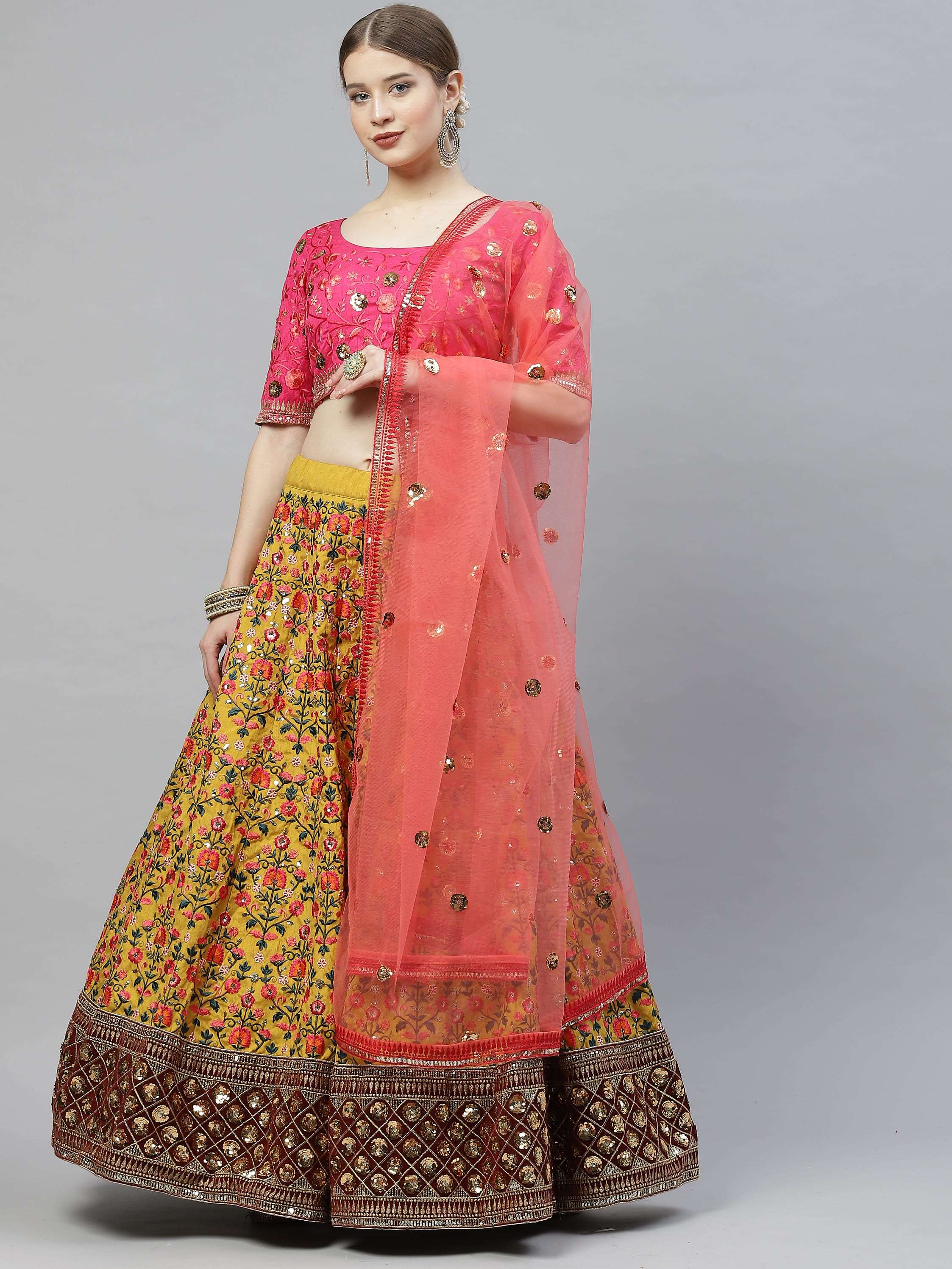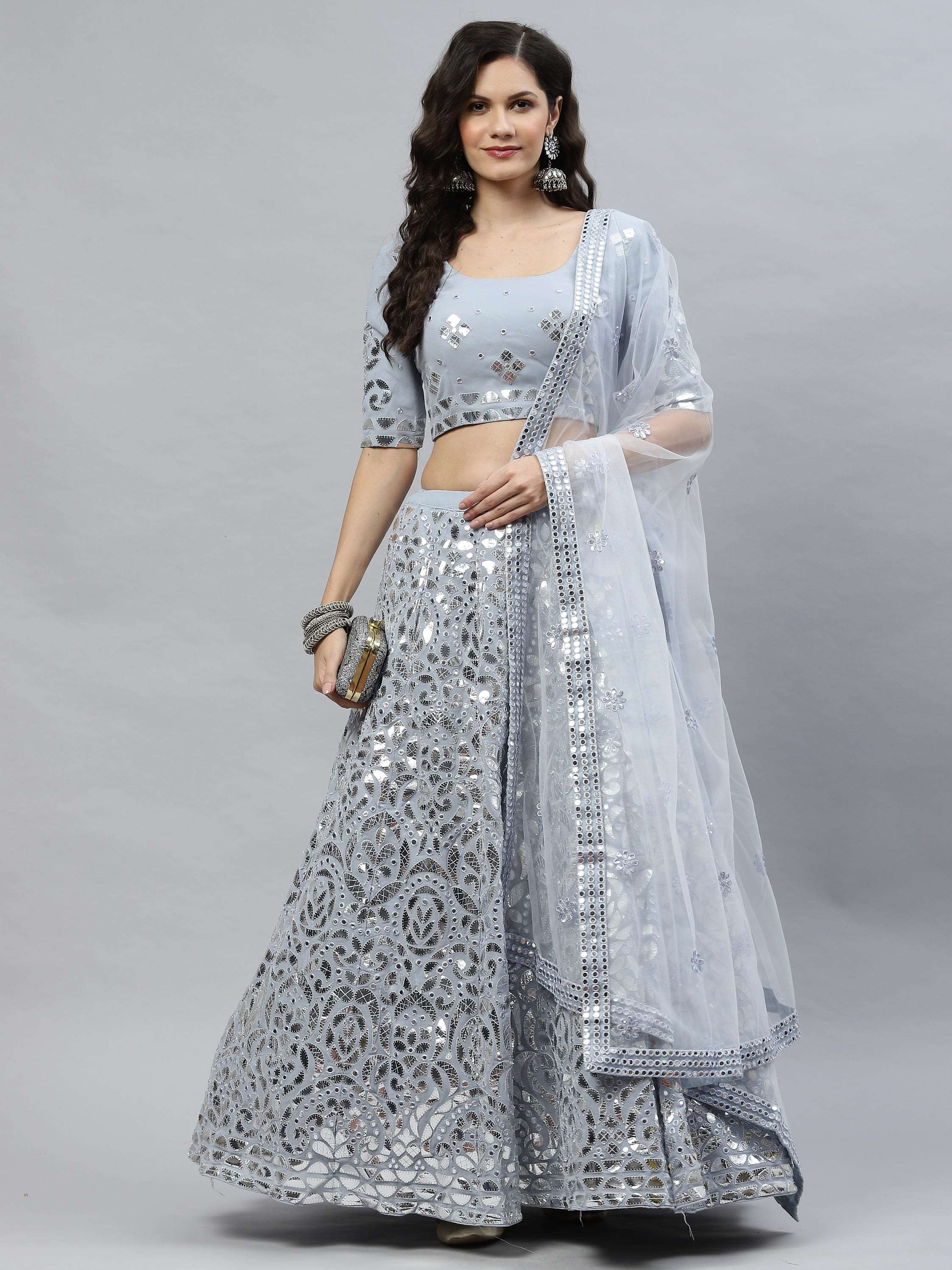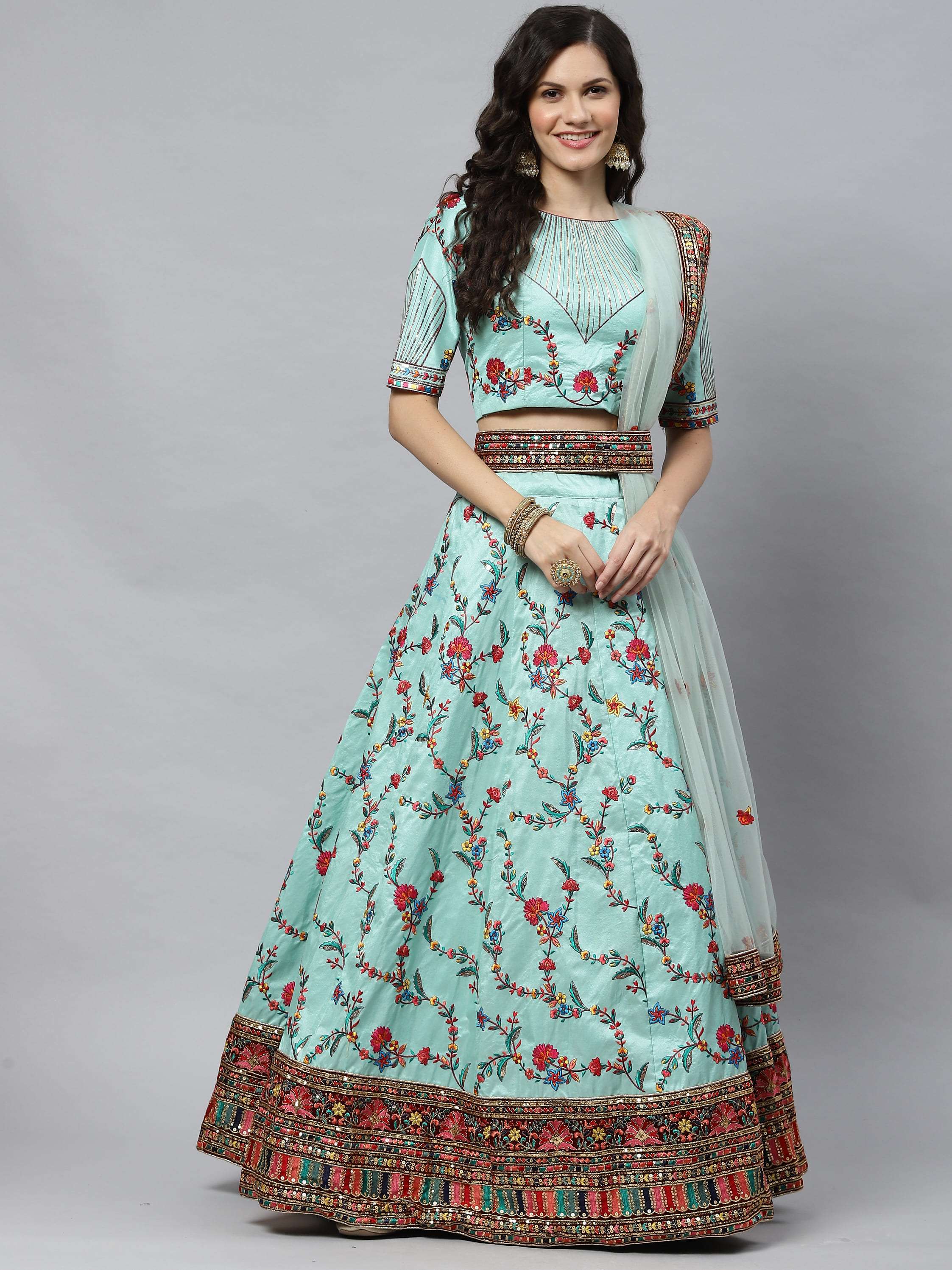 Indian Latest Designer Lehenga Choli Collection. Exclusive with Embroidery Work gives a Fashionable Look, High sensed style and luxury makes you ready for envious glazes and very rich & Royal in the Party, Function, Event etc.