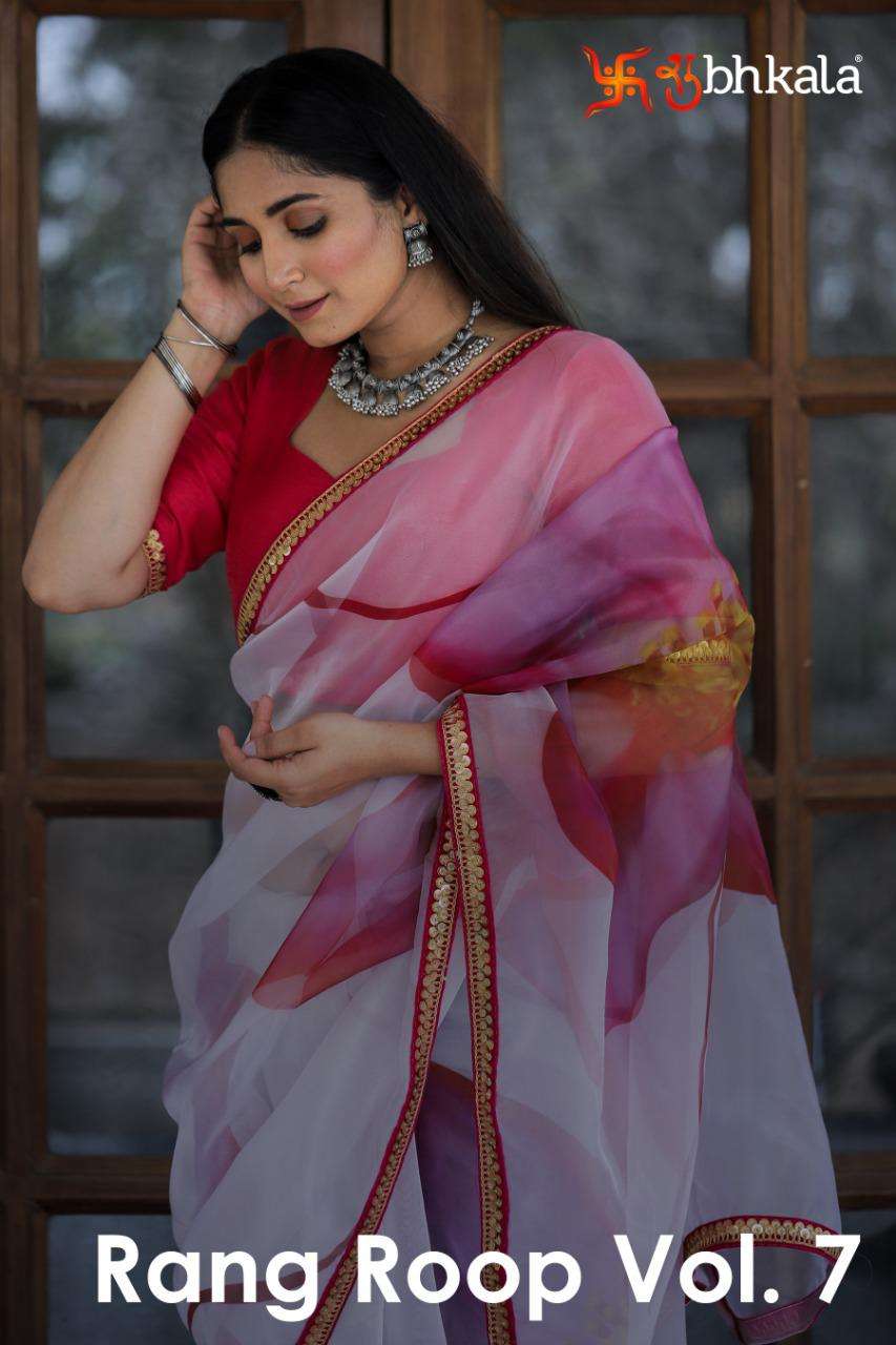 SHUBHKALA RANG ROOP VOL-7 4741 TO 4746 SERIES ORGANZA SAREES PARTY WEAR COLLECTION AT WHOLESALE PRICE