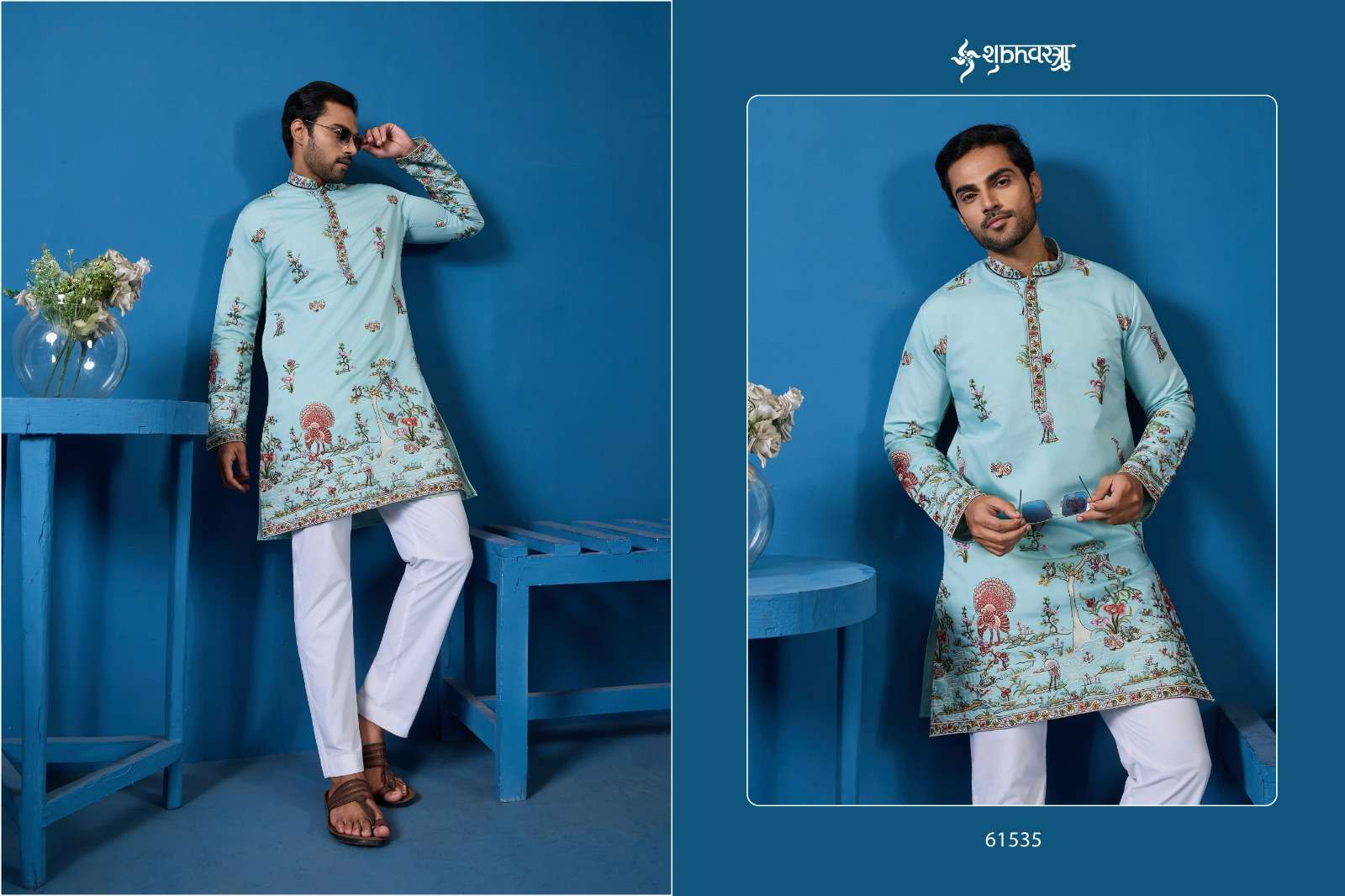 | Catalogue: | Shubhvastra VANTARA VOGUE 61531 TO 61536 Mens Wear Kurta with Bottom Collection |