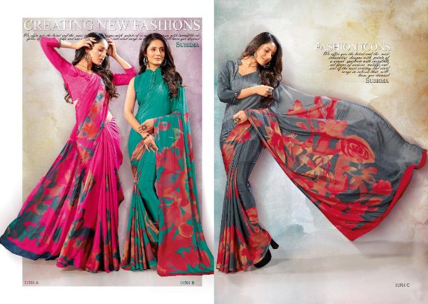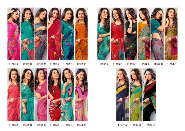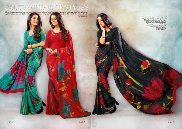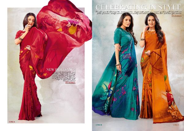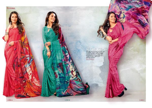 Shushma Presents Reflections 11501a - 11507c Series Style Crape With Soft Weaving Casual Wear Saree Collection Whole Sale Rate