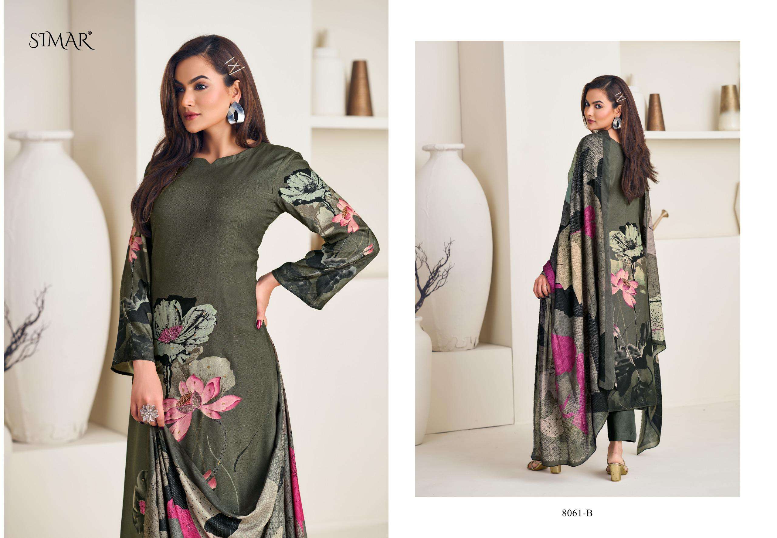 | Catalogue: | SIMAR TREASURE 8061 Pure Viscose Muslin Digital Printed Suit With Handwork |