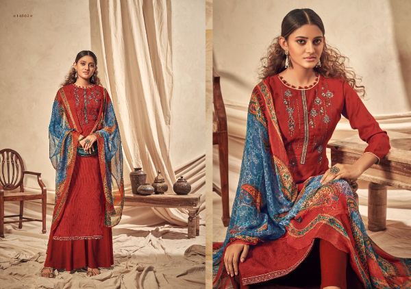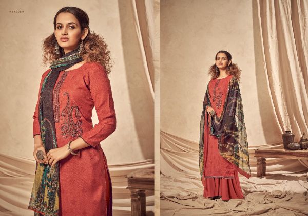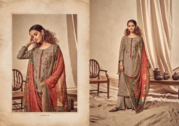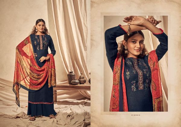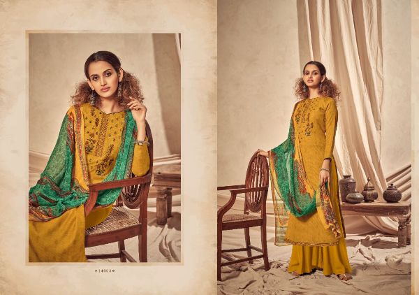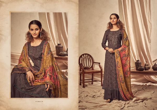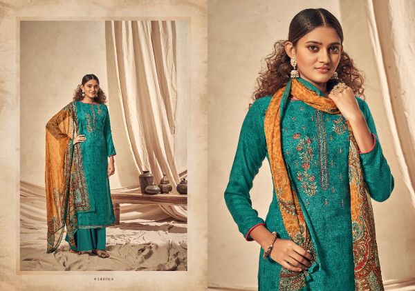 Siyoni Designer Presents Kaas 14001-14008 Series Heavy European Wool Pashmina Printed With Embroidery Work Salwar Suit Collection