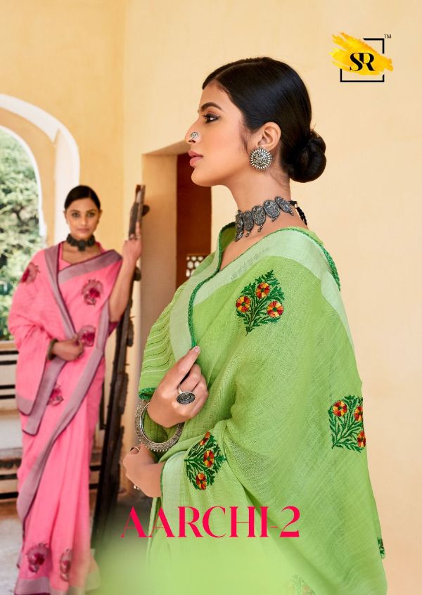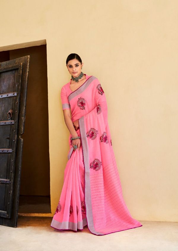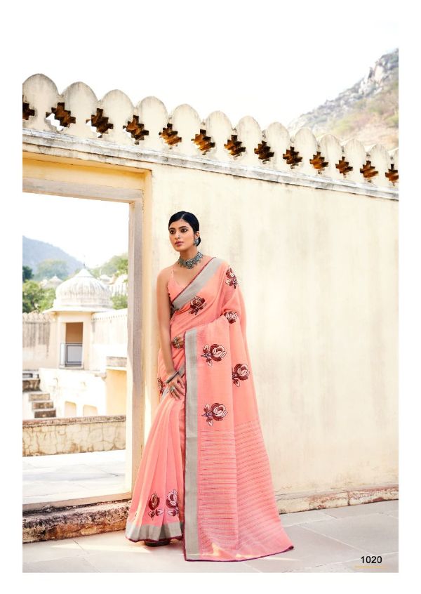 Sr Presents Aarchi 1011-1020 Series Pure Linen Weaving Border Saree Colection