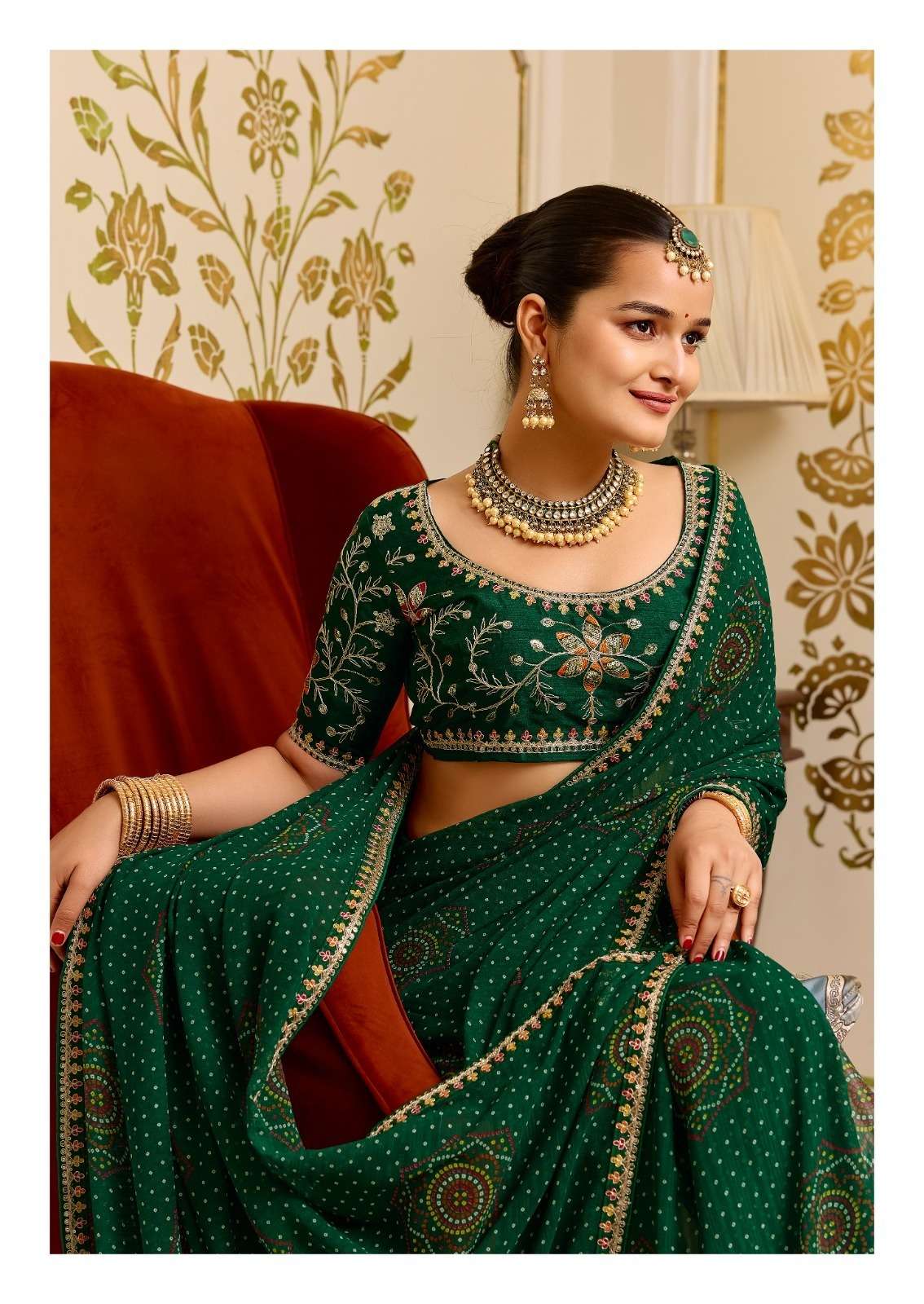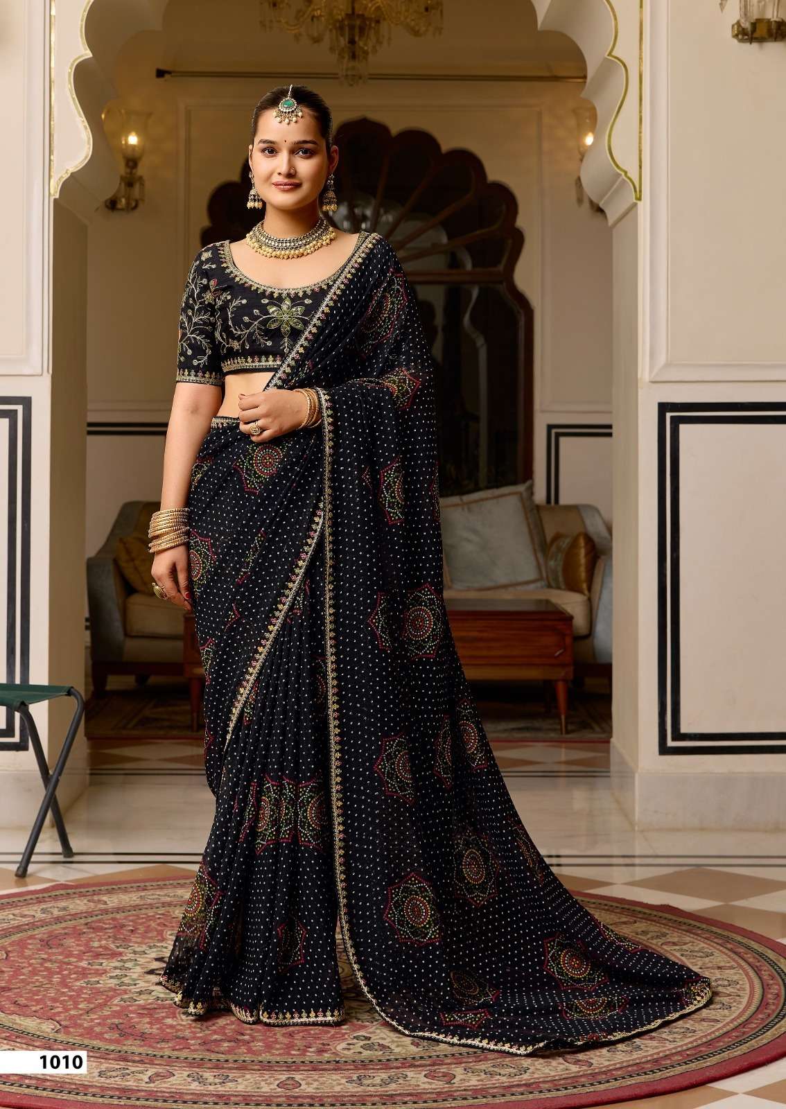 Fabric - Georgette Fancy Pattern with Meena border & Embroidery blouse