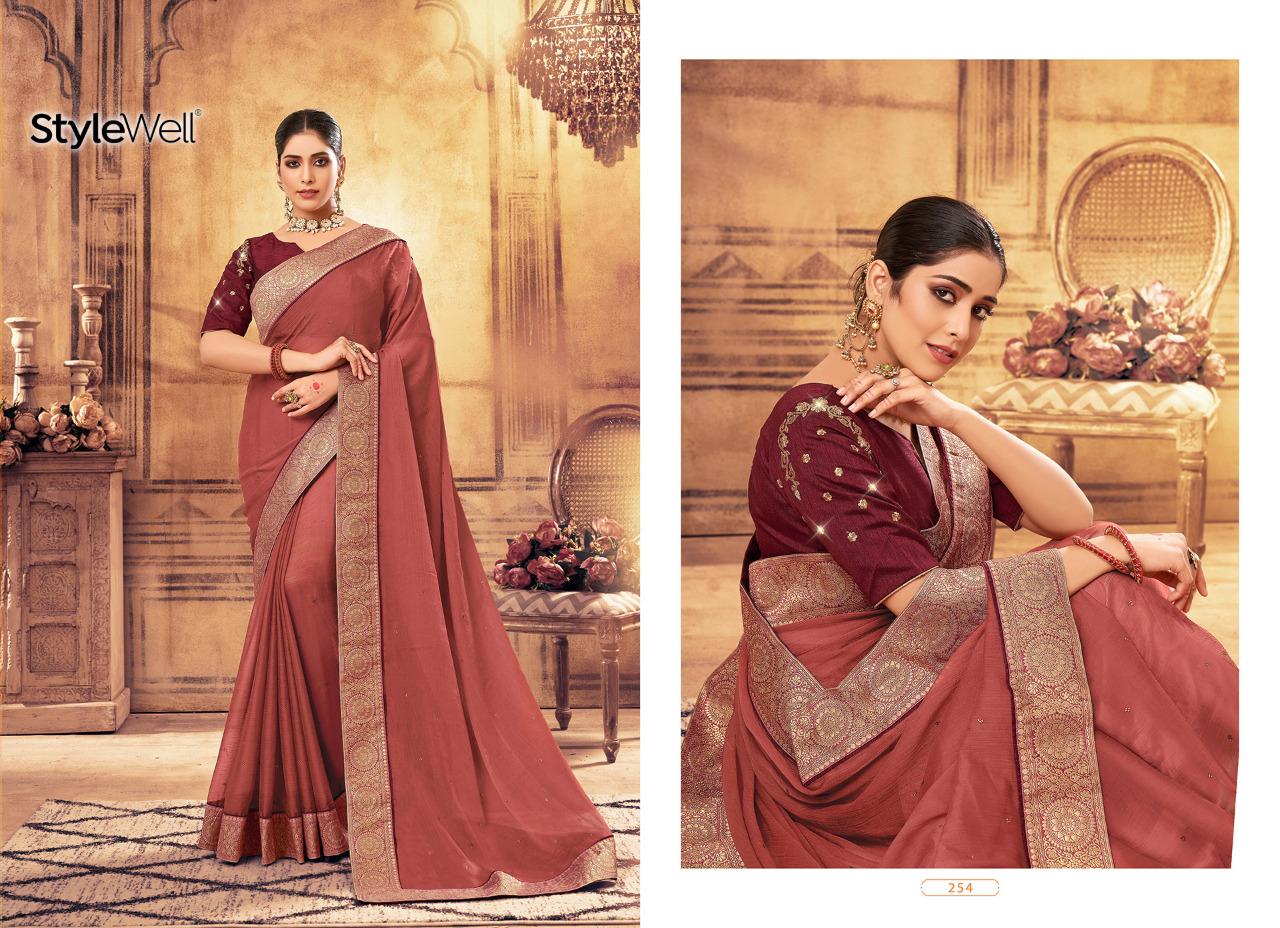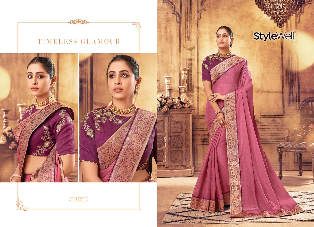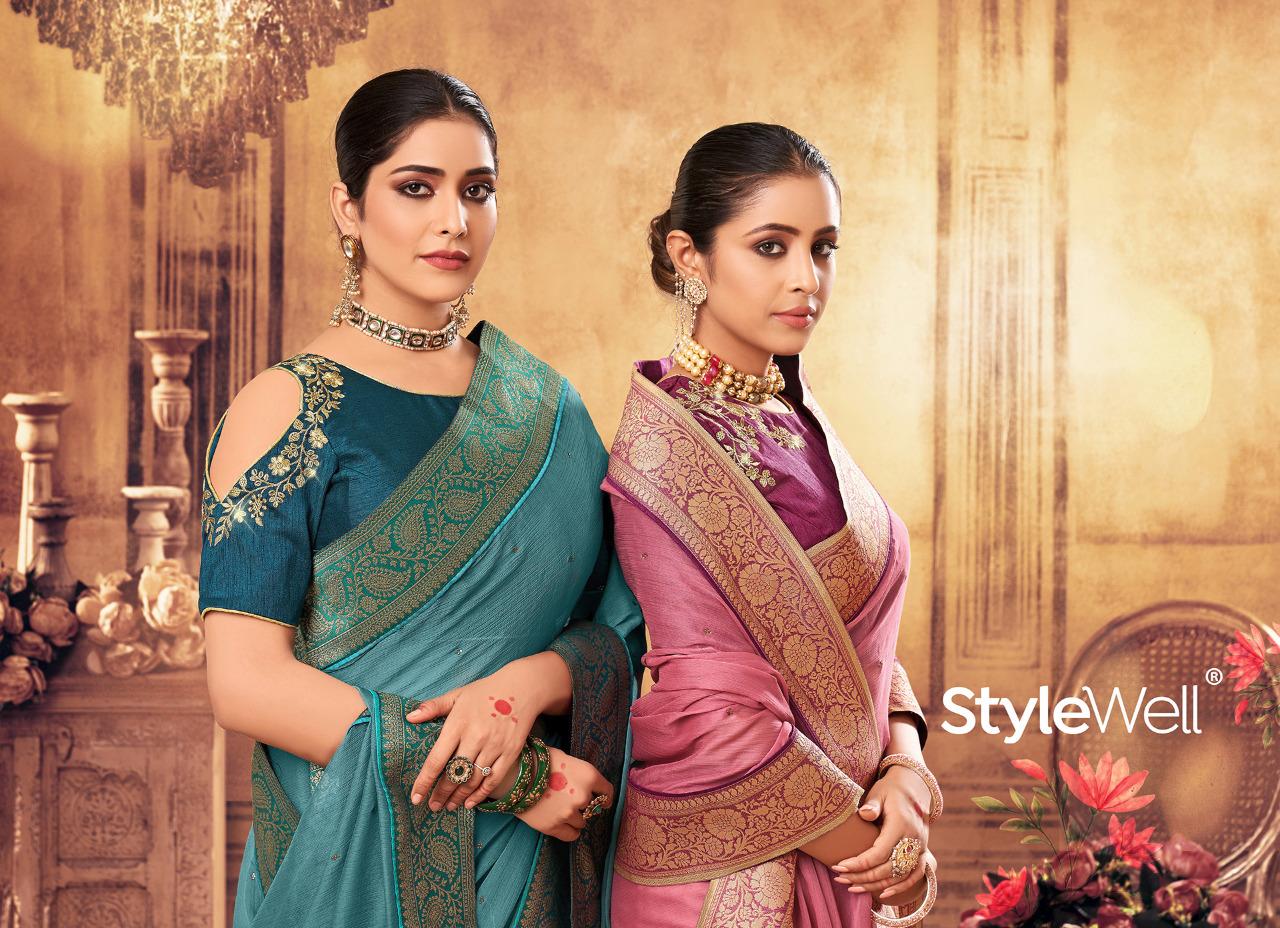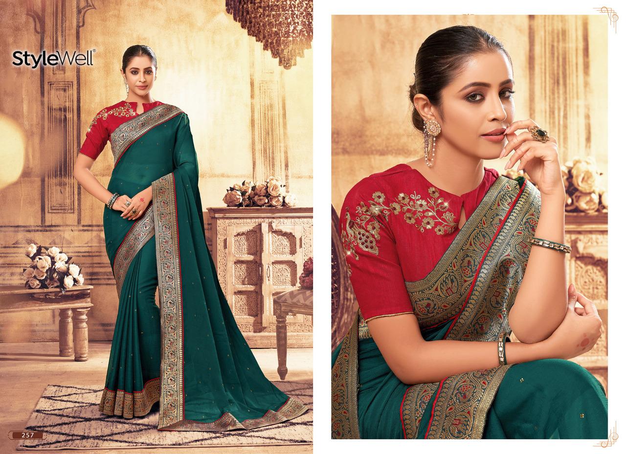 Stylewell Presents Banarasiya Vol-3 251 - 257 Series Moss Chiffon With Hand Diamond Work And Stitched Pure Banarasi Jacquard Border Fancy Party Wear Saree Collection