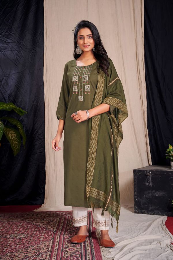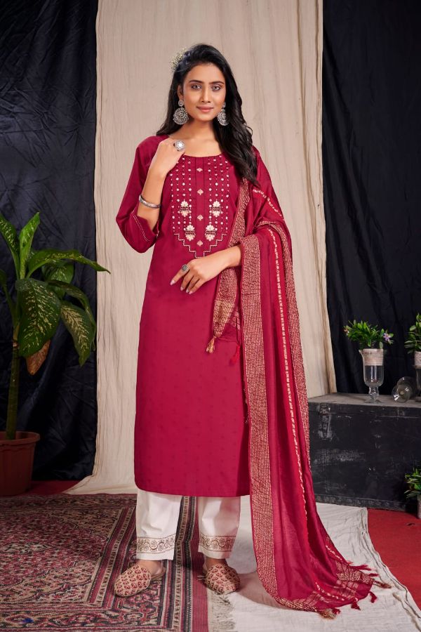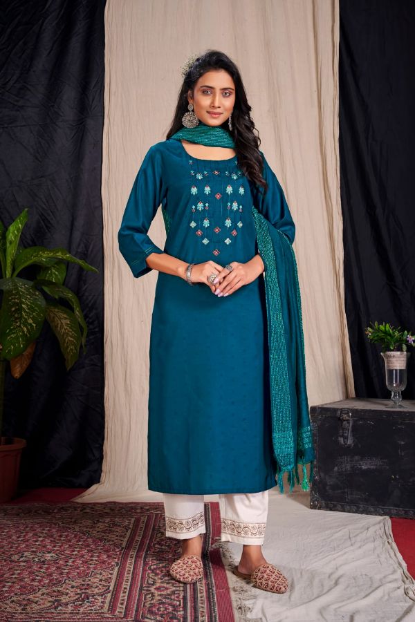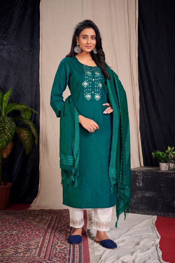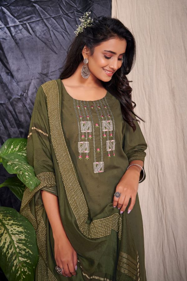 Fabric : ????? Top : Fancy Cotton Weaving Stripe With Embroidery & Stylist Pattern.