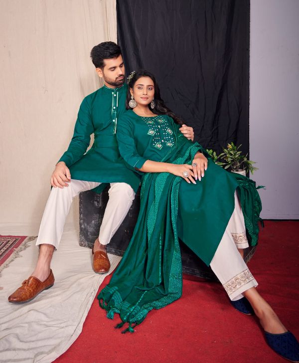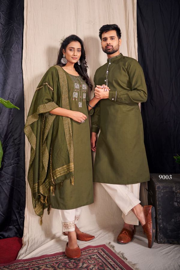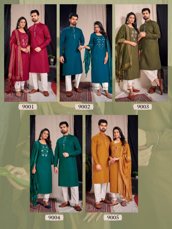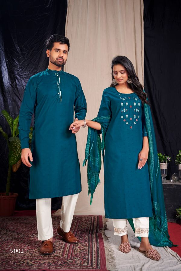 Sukanya Fashion Present Royal Couple Combo 9001,9002,9003,9004,9005 Series Fancy Cotton Weaving Stripe With Embroidery Couple Combo Collection
