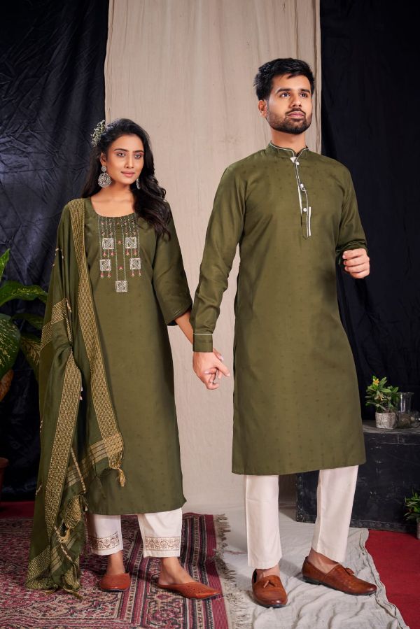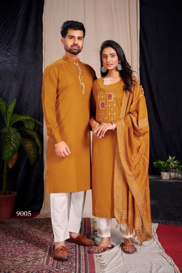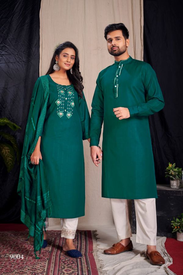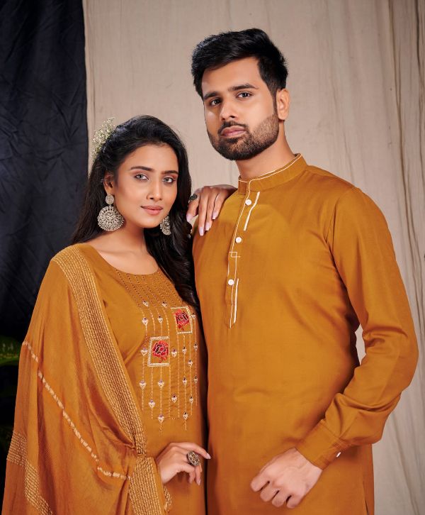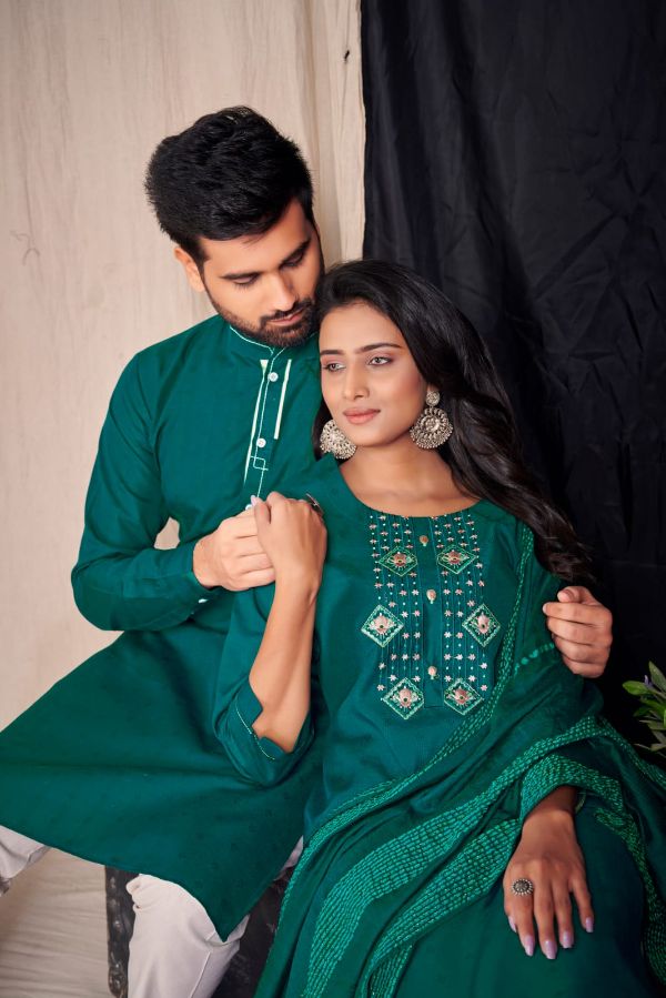 Latest Designer couple combo Collection. Exclusive with Foil & Thread Embroidery Work gives a Fashionable Look, High sensed style and luxury makes you ready for envious glazes and very rich & Royal in the Party, Function, Event etc.