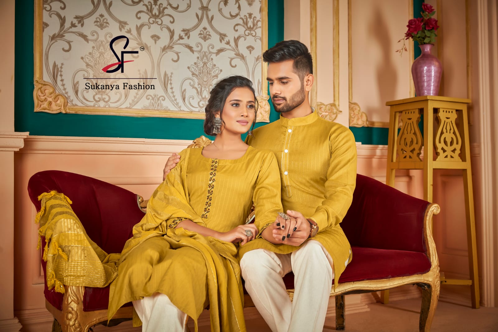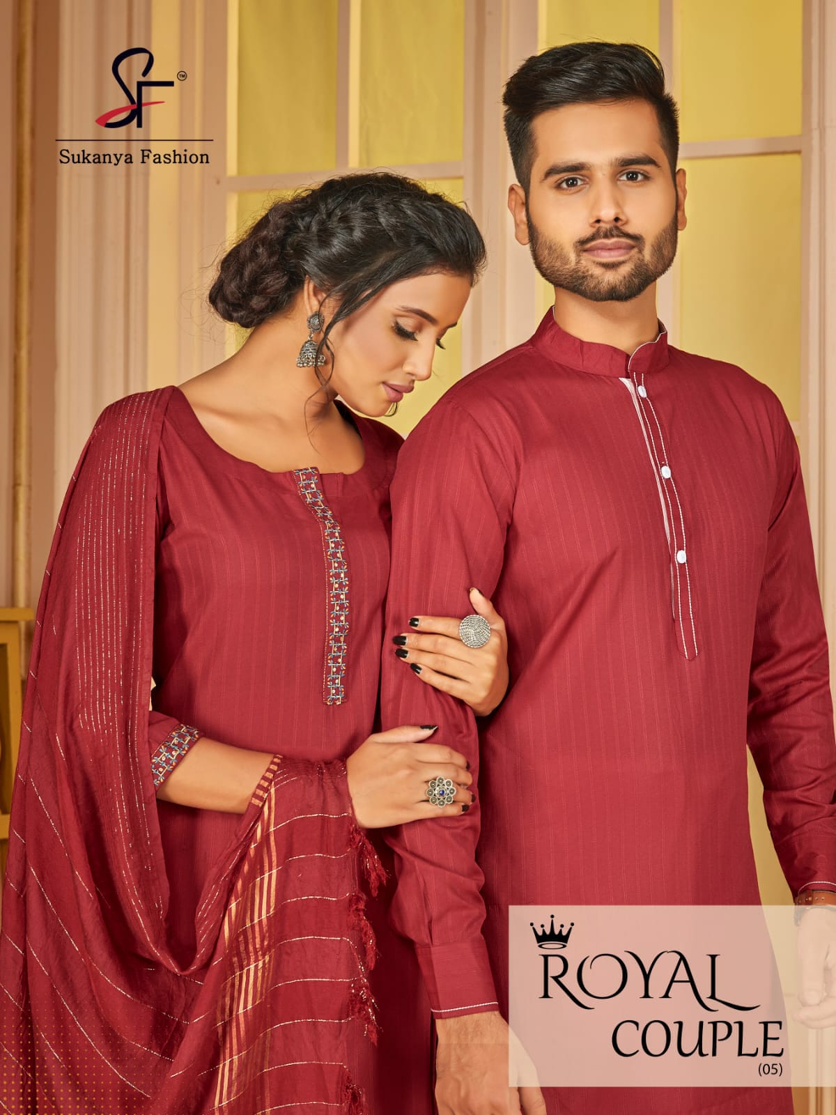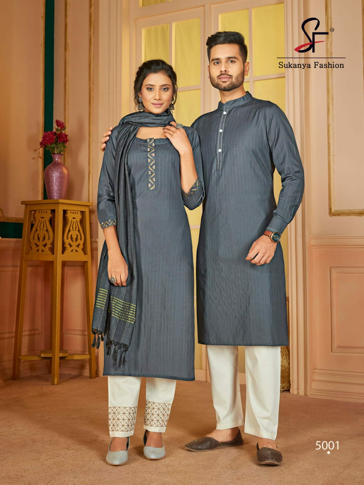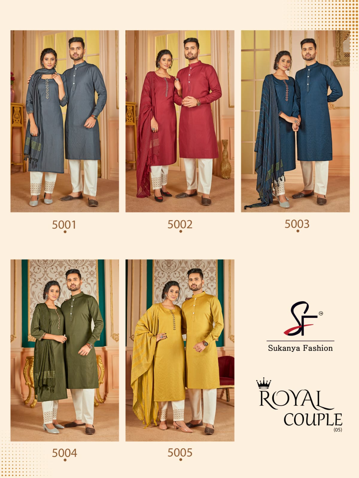 Sukanya Fashion Present Royal Couple Vol-5 5001 - 5005 Series Fancy Cotton Weaving Stripe With Embroidery Work And Stylist Pattern Fancy Party Wear Couple Combo Collection