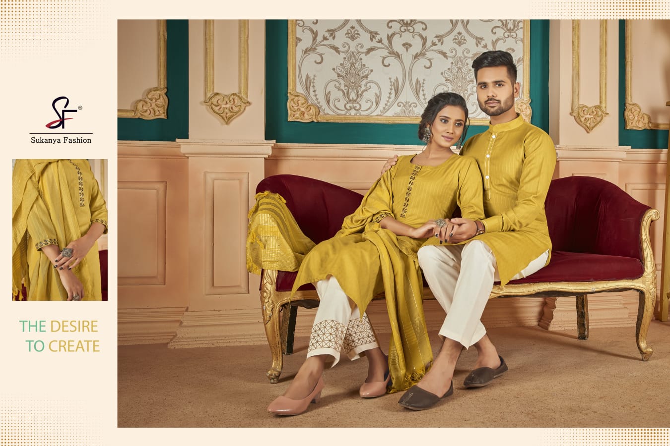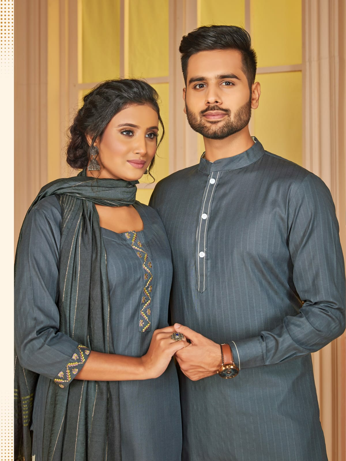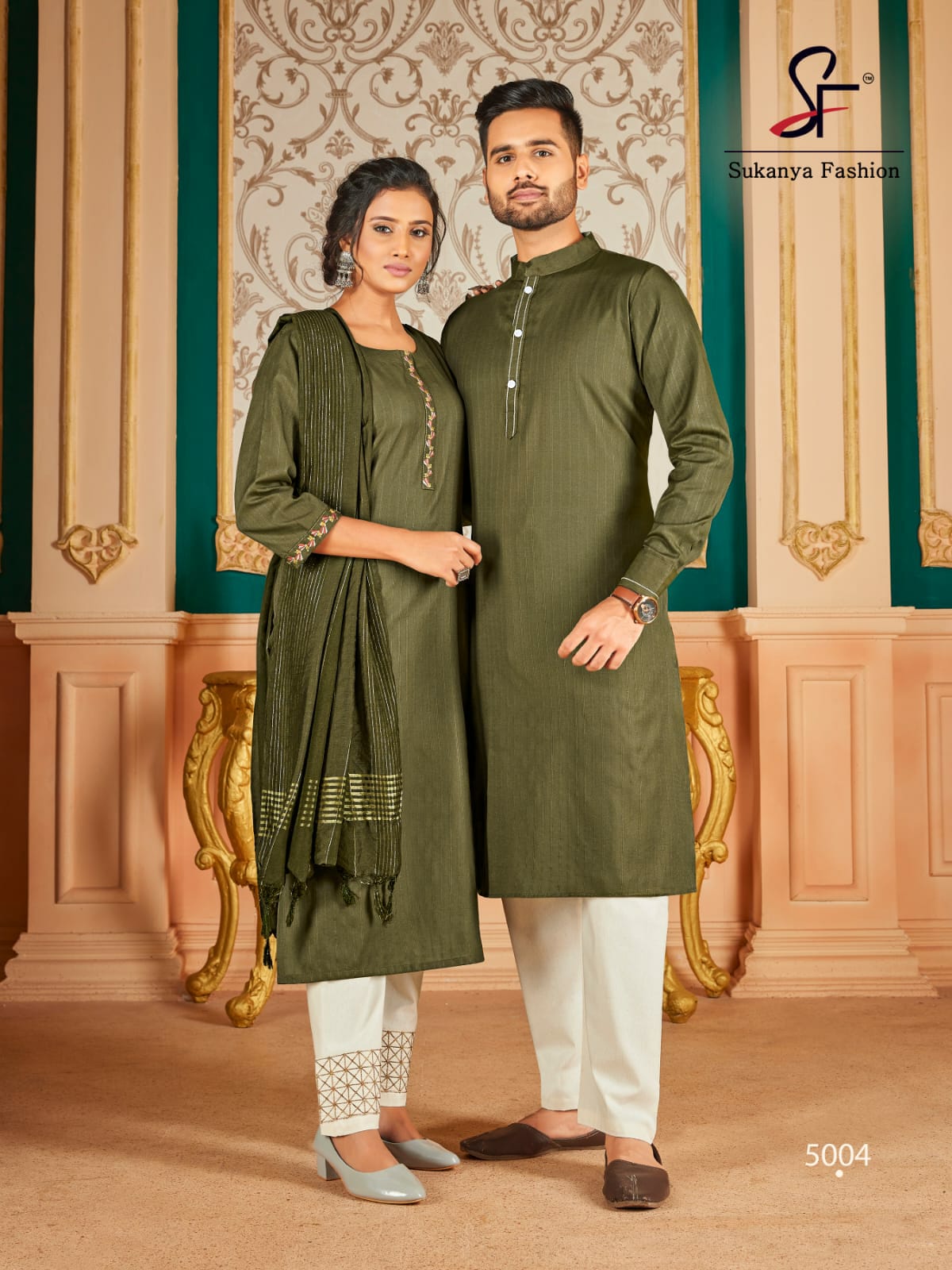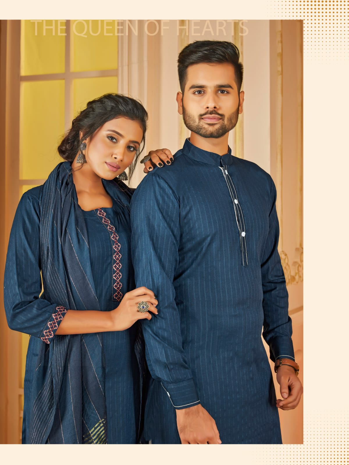 Sukanya Fashion Present Royal Couple Vol-5 5001 - 5005 Series Fancy Cotton Weaving Stripe With Embroidery Work And Stylist Pattern Fancy Party Wear Couple Combo Collection