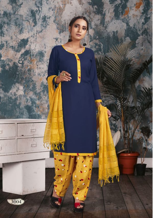 Sukanya Fashion Presents Soni Kudi V-3 3001-3006 Series Pure Rayon With Print Salwar Suit Combo