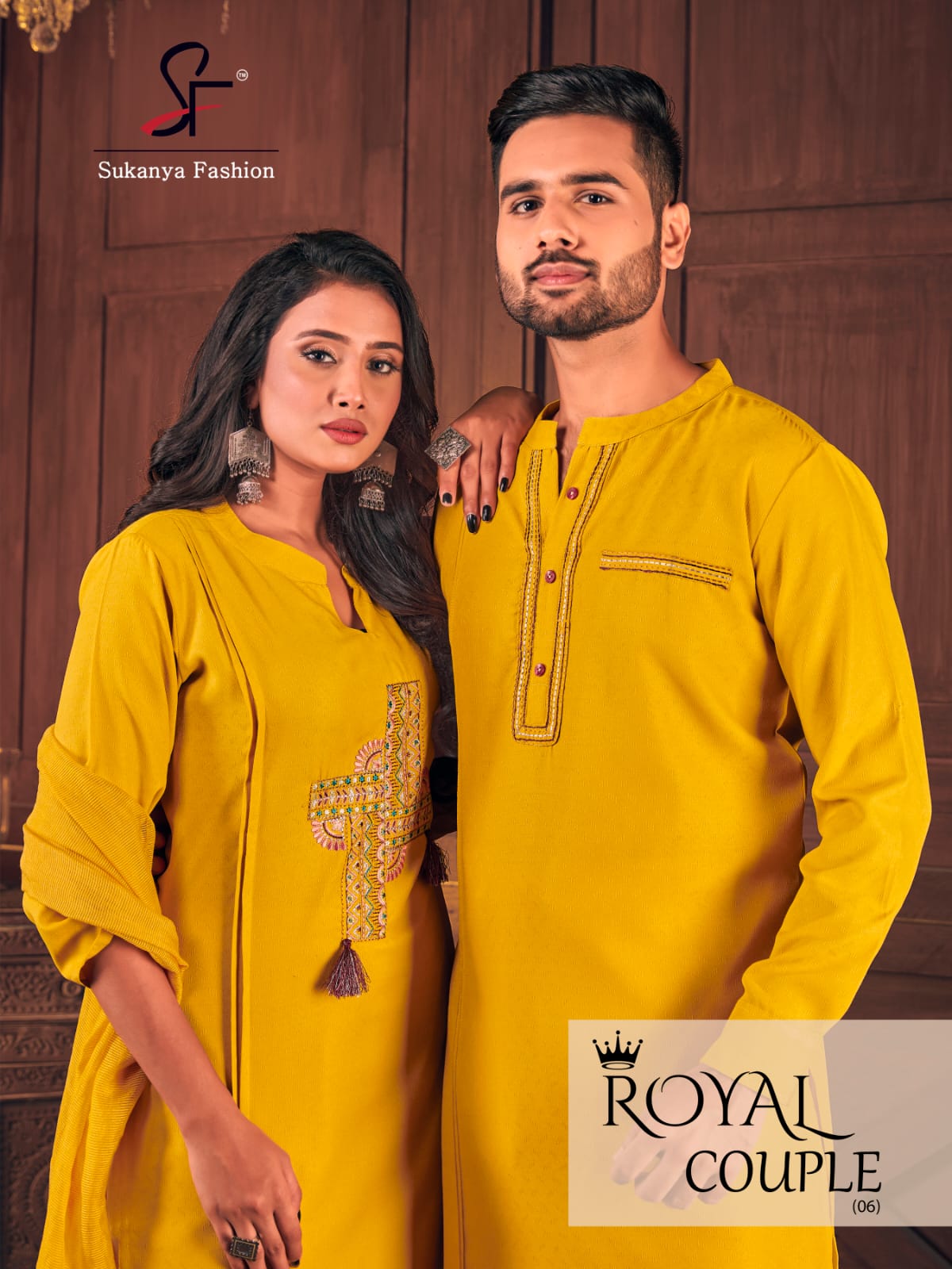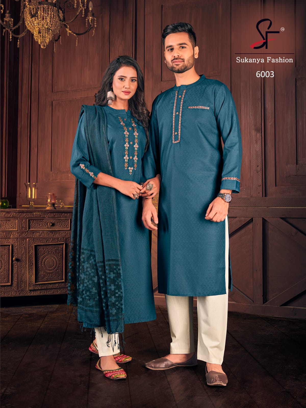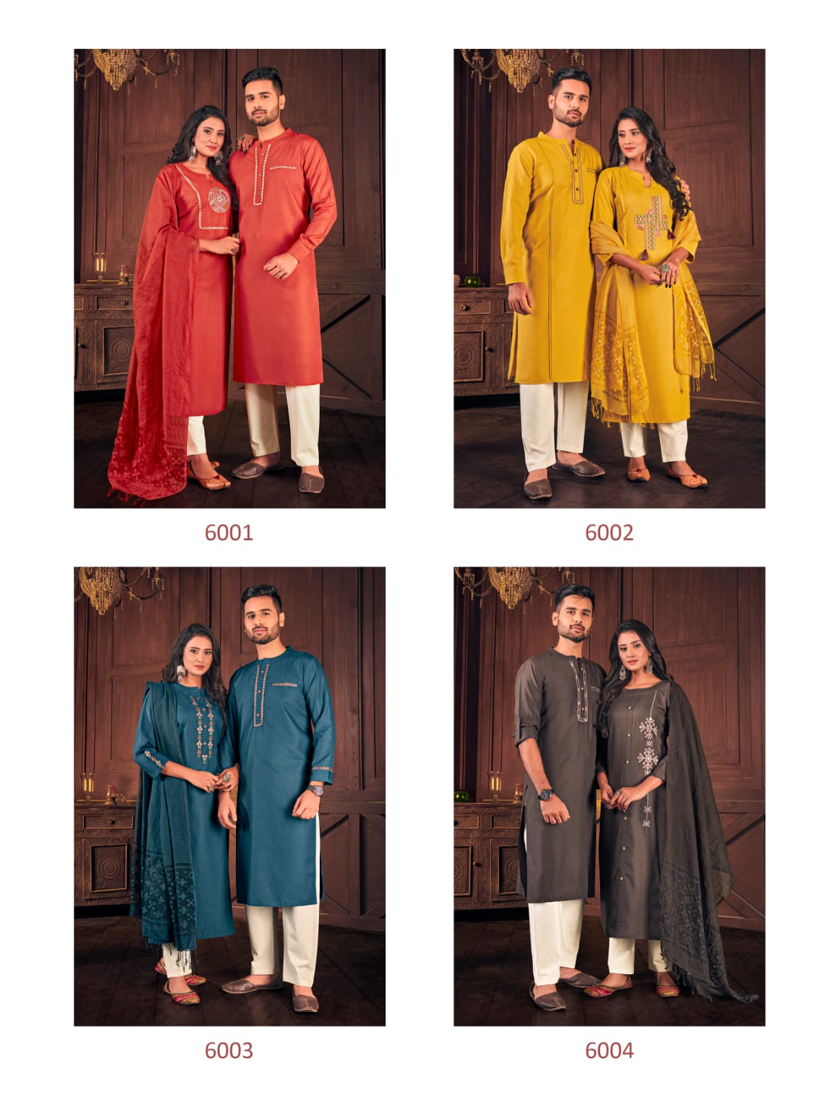 Sukanya Presents Royal Couple Vol-6 6001 - 6004 Series Fancy Cotton Weaving Butti With Embroidery And Stylist Pattern Fancy Party Wear Couple Combo Collection