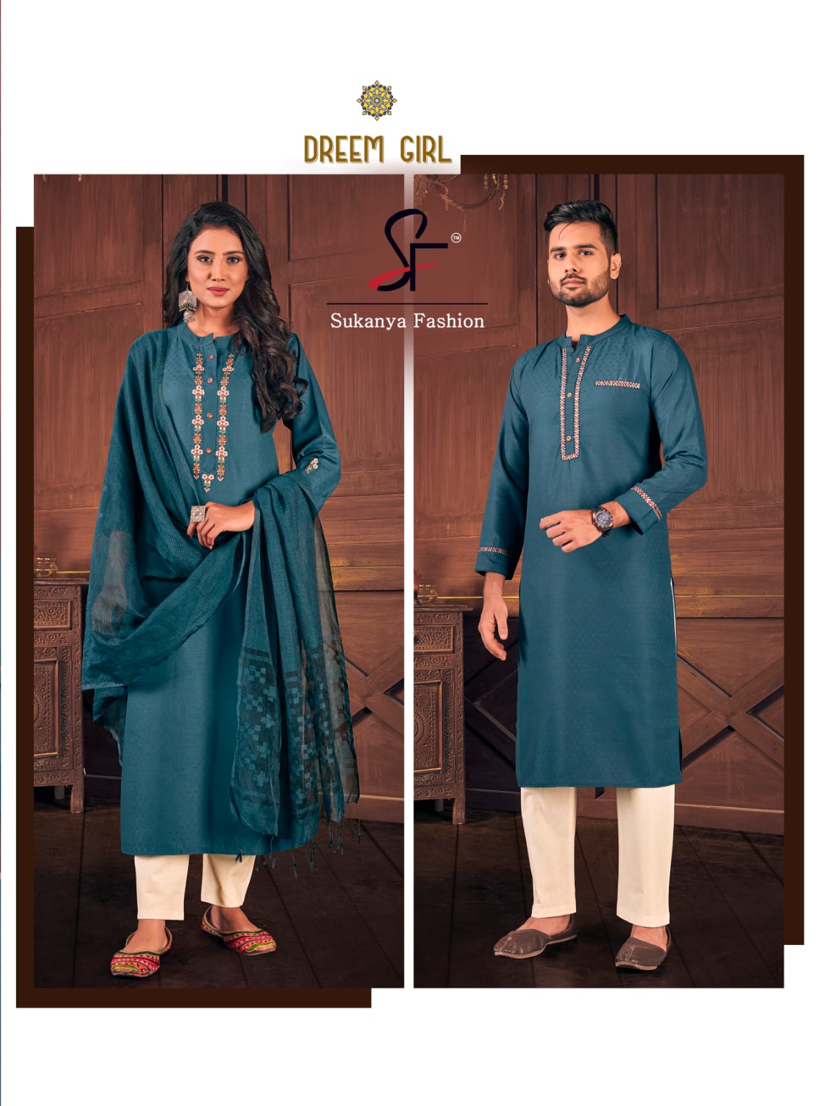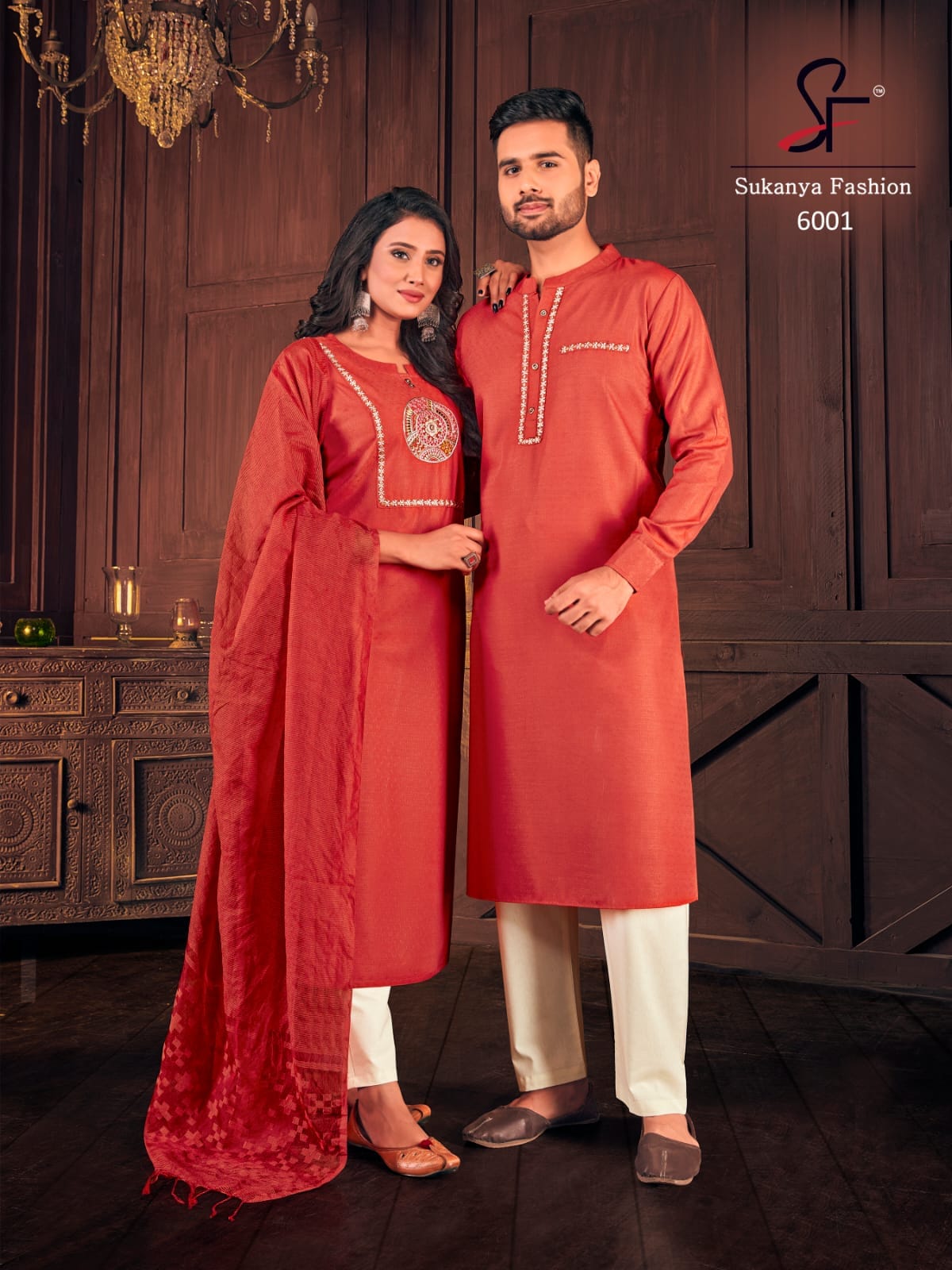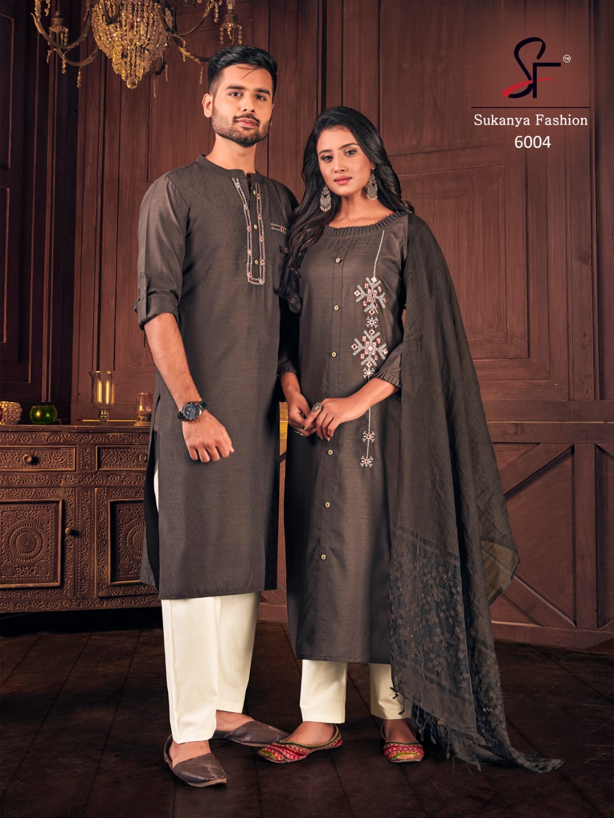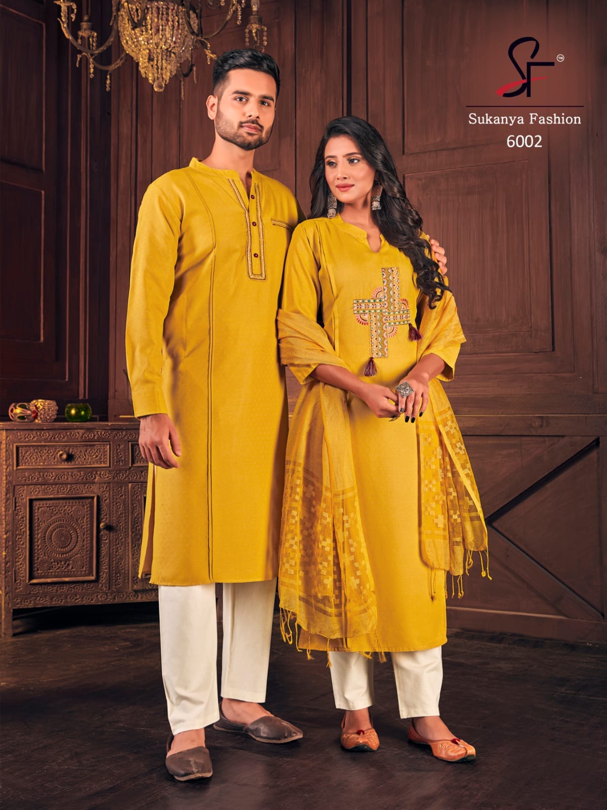 Sukanya Presents Royal Couple Vol-6 6001 - 6004 Series Fancy Cotton Weaving Butti With Embroidery And Stylist Pattern Fancy Party Wear Couple Combo Collection