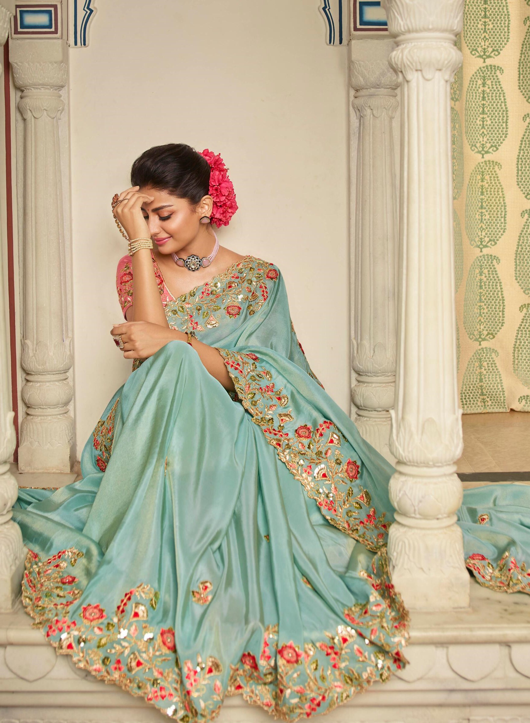 Latest Designer saree Collection. Exclusive with Foil & Thread Embroidery Work gives a Fashionable Look, High sensed style and luxury makes you ready for envious glazes and very rich & Royal in the Party, Function, Event etc.