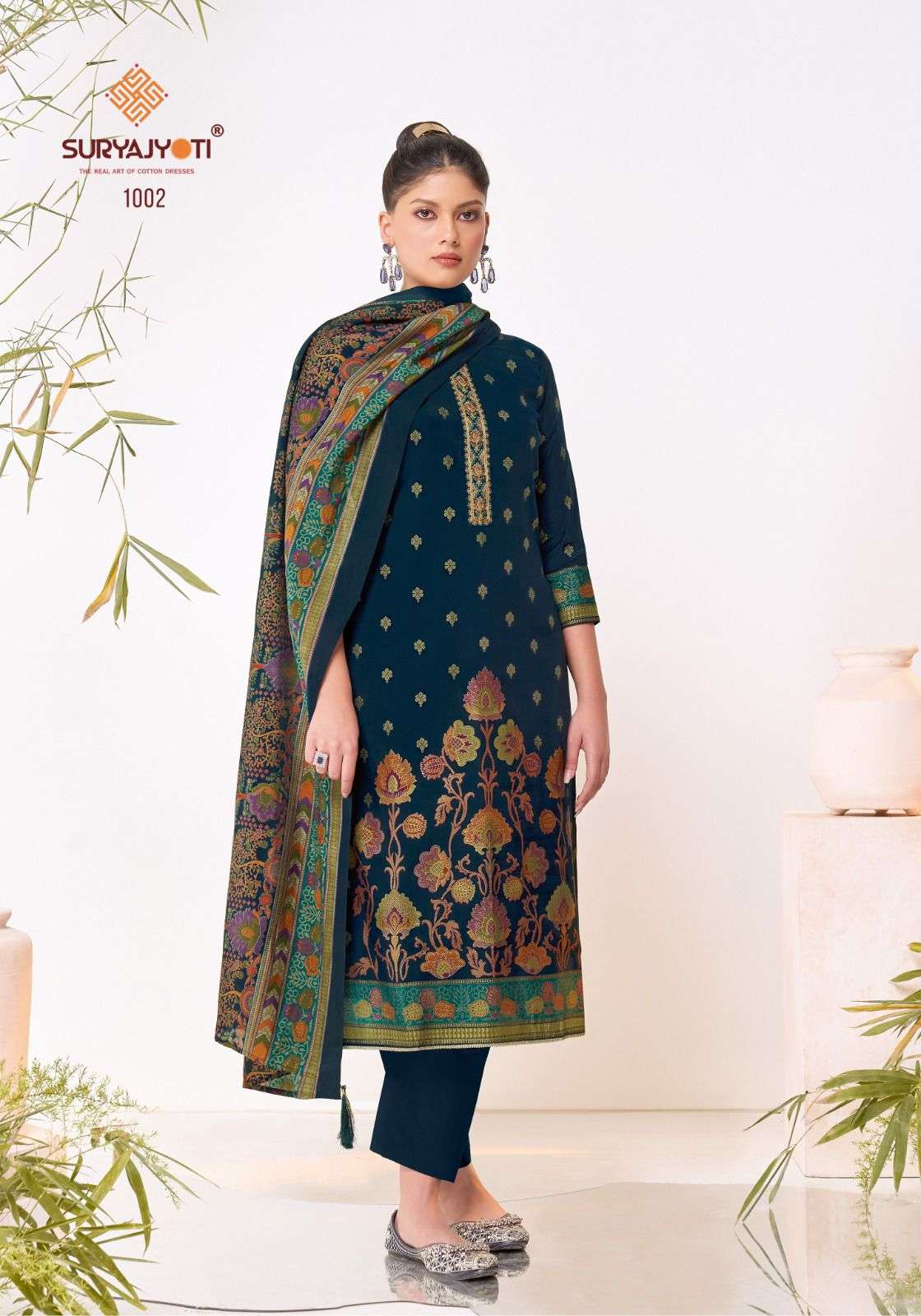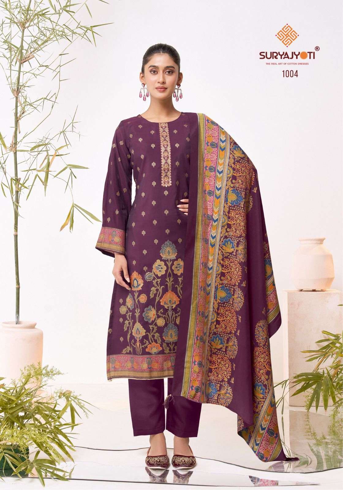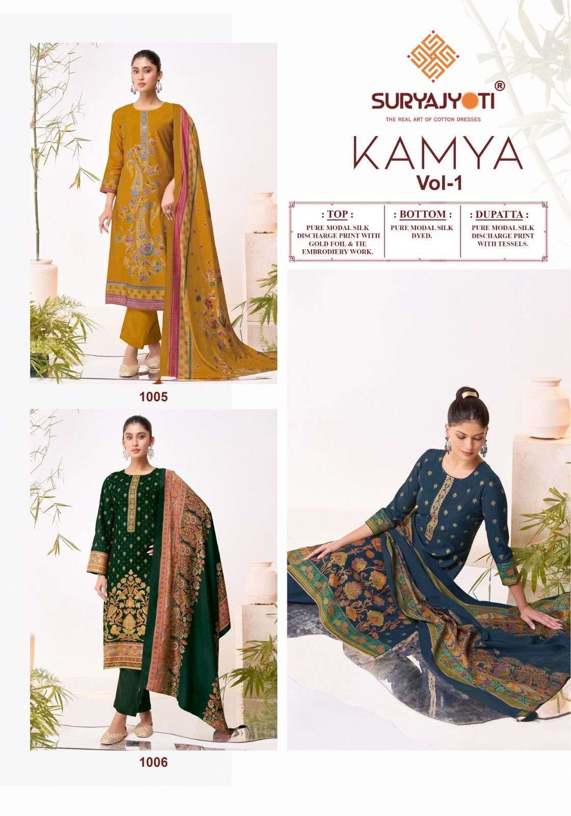| Catalogue: | SURYAJYOTI KAMYA VOL 1 PURE MODAL SILK EMBROIDERY WORK SUIT |
