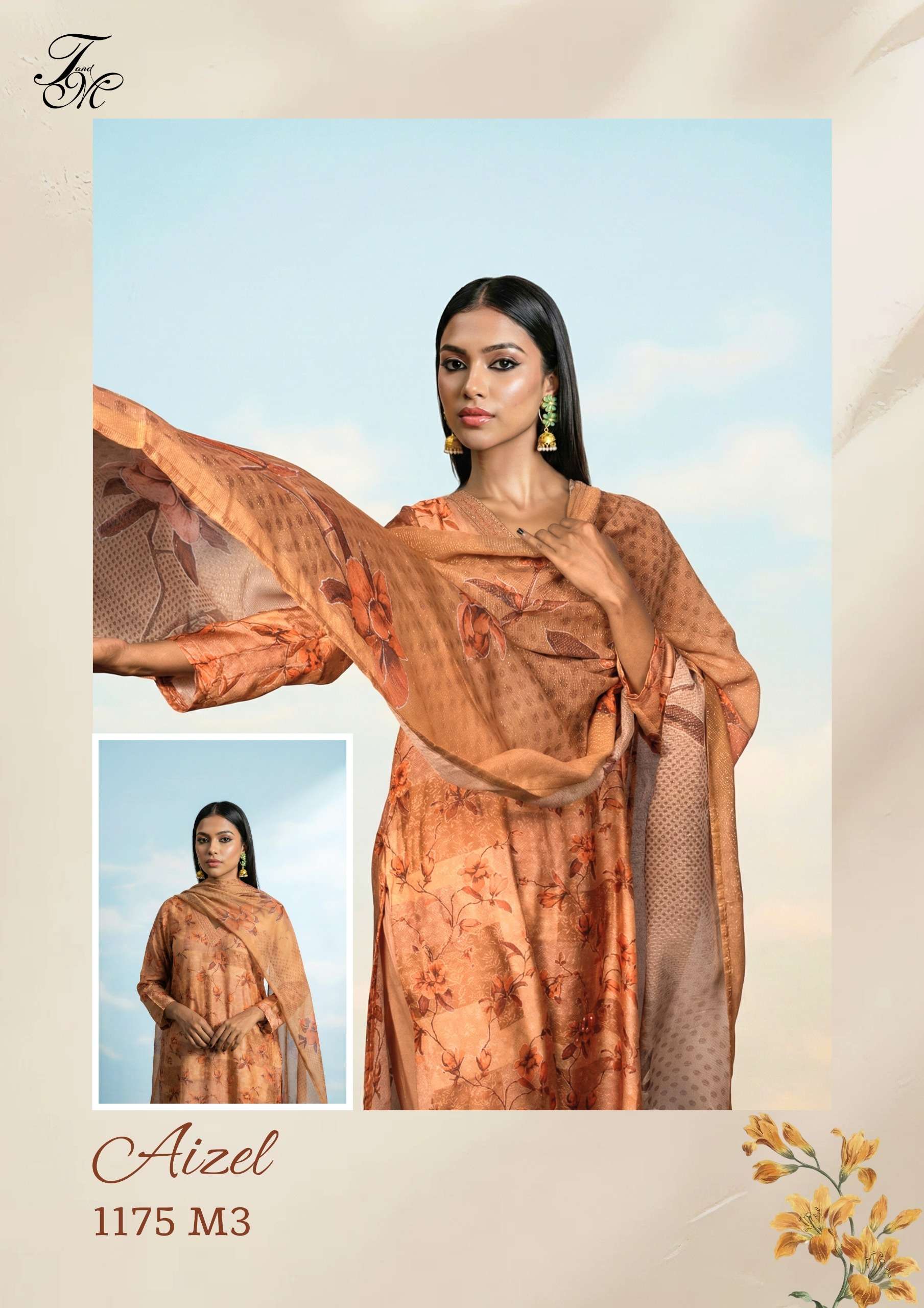 | Catalogue: | T&M AIZEL BEMBERG MUSLIN SILK DIGITAL PRINT & EMBROIDERED SUIT |