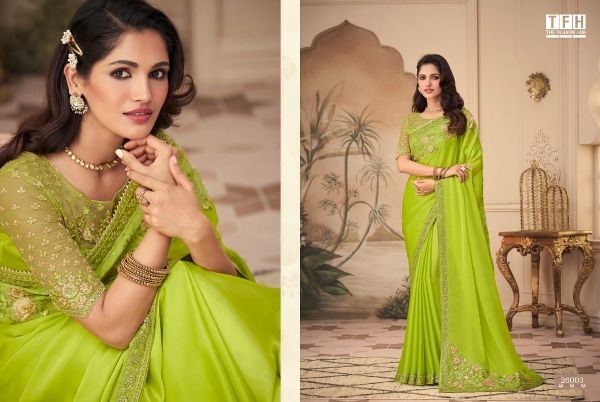 Latest Traditional Wear Saree Collection. Exclusive with Embroidery Work gives a Fashionable Look, High sensed style and luxury makes you ready for envious glazes and very rich & Royal in the Party, Function, Event etc.