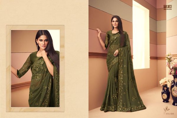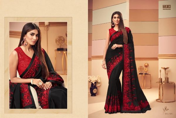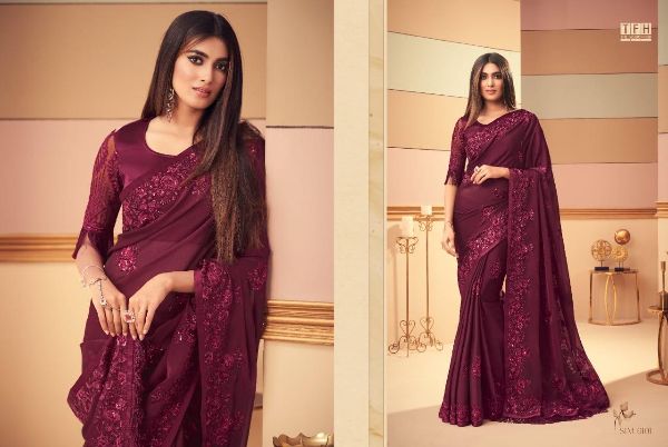 Tfh Presents Simran Story 6101-6116 Series Beautiful Glass Silk Party Wear Saree Collection