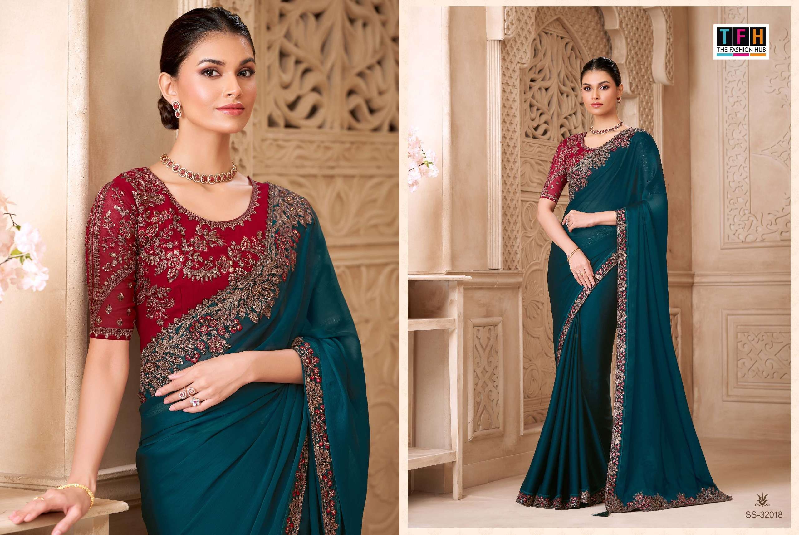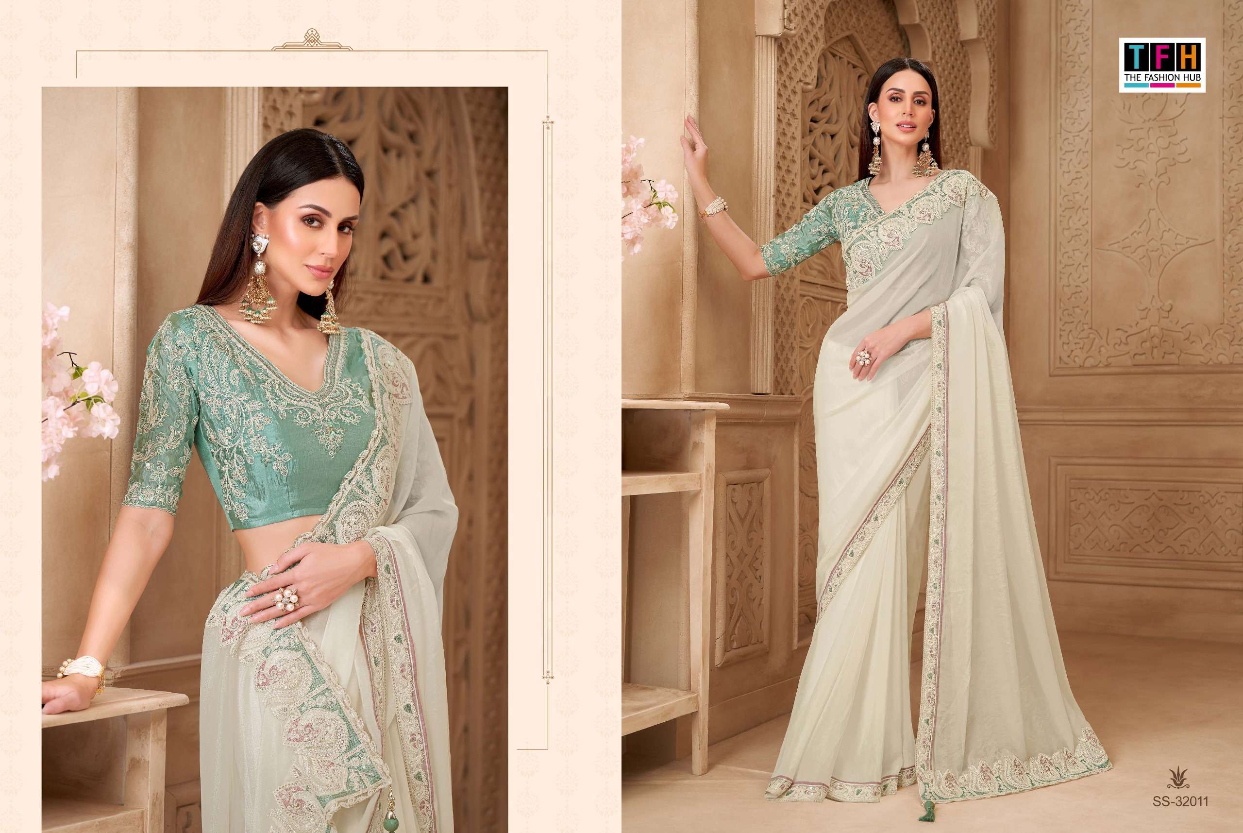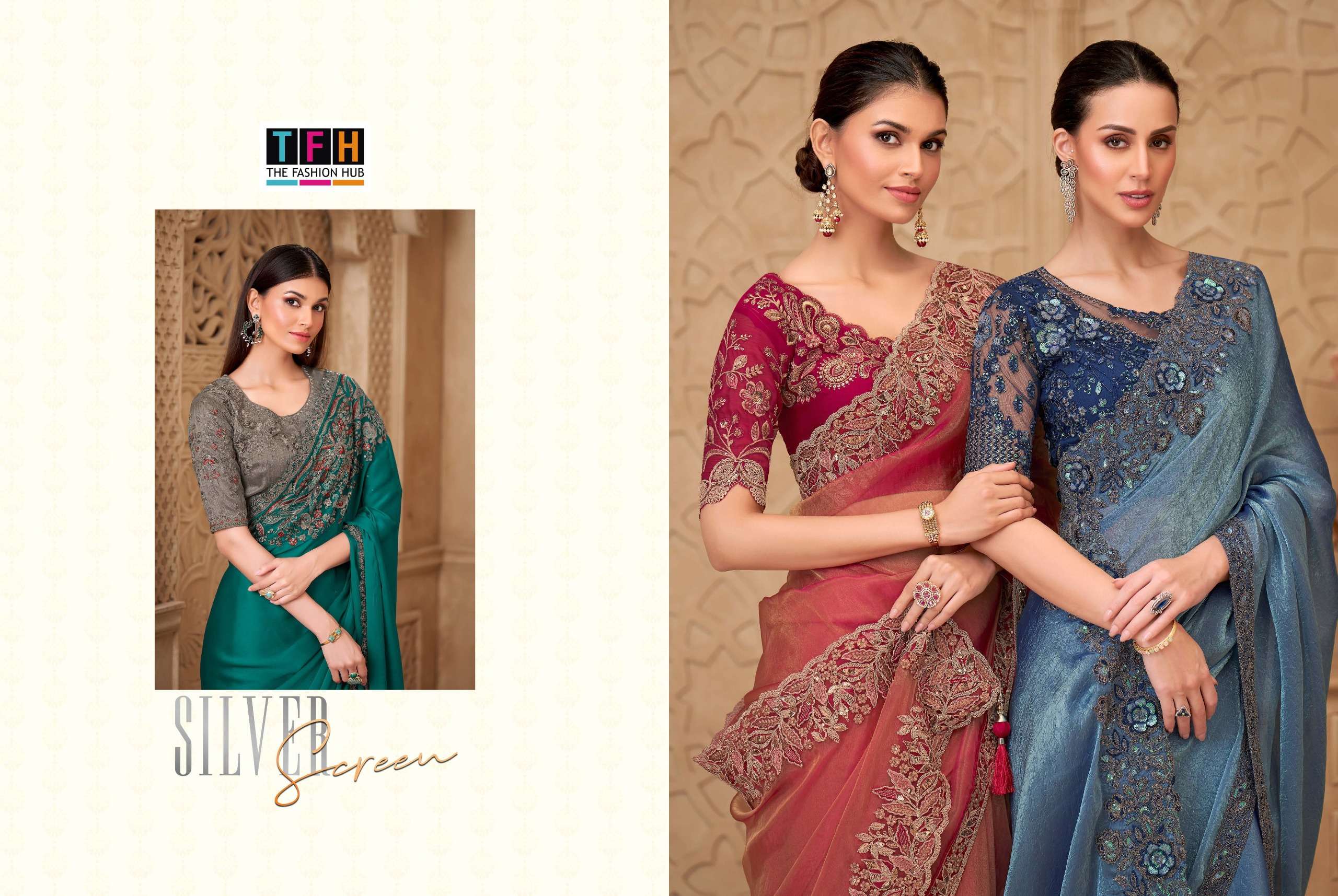 | Catalogue: | Tfh Silver Screen 22 32000 Series Sartin Pattern Georgette Saree |